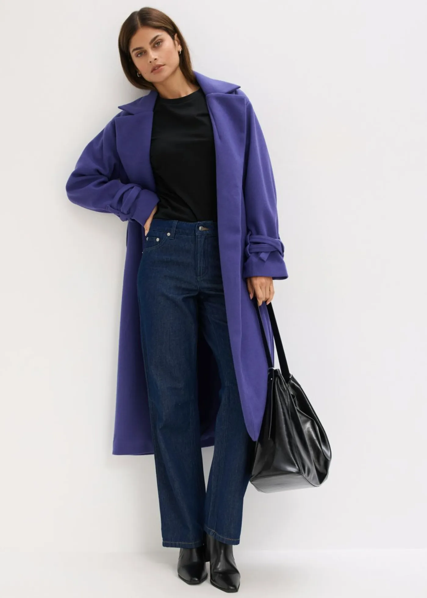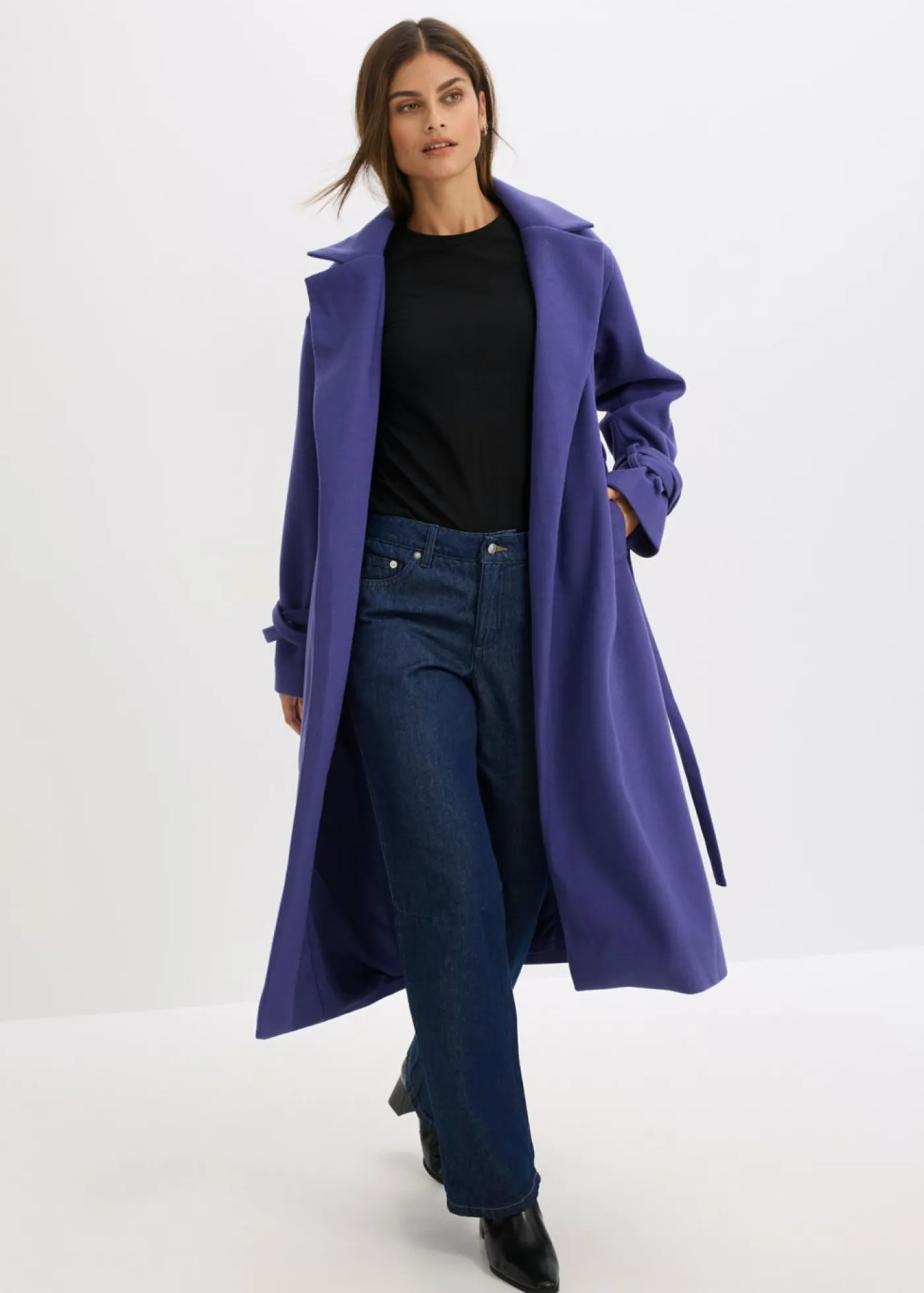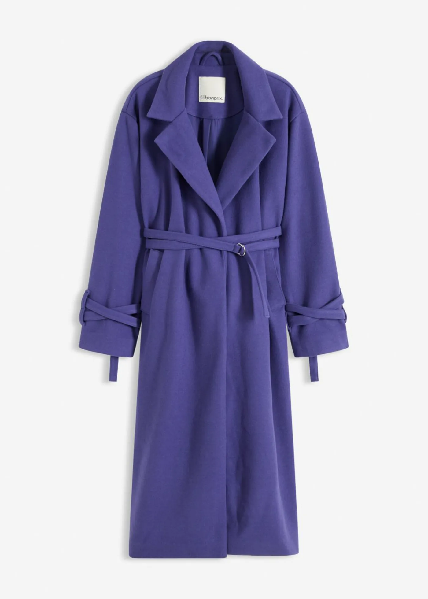 Abrigo holgado con cinturón y doble enganche en las mangas.