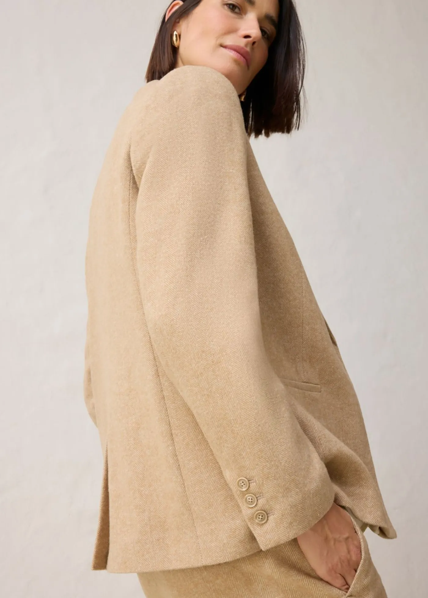| Material | Material externo: 54% lana, 46% poliester reciclado; Forro: 55% poliester reciclado, 45% viscosa |