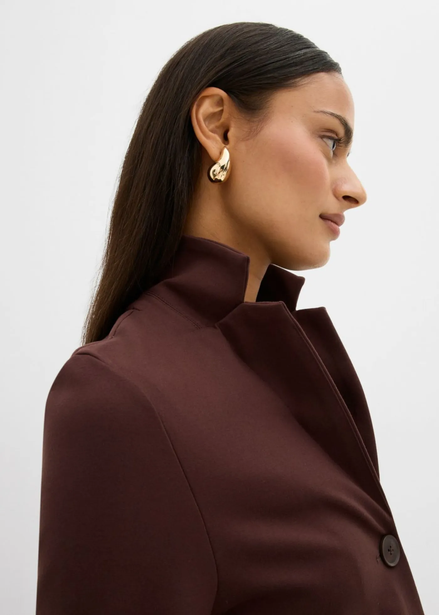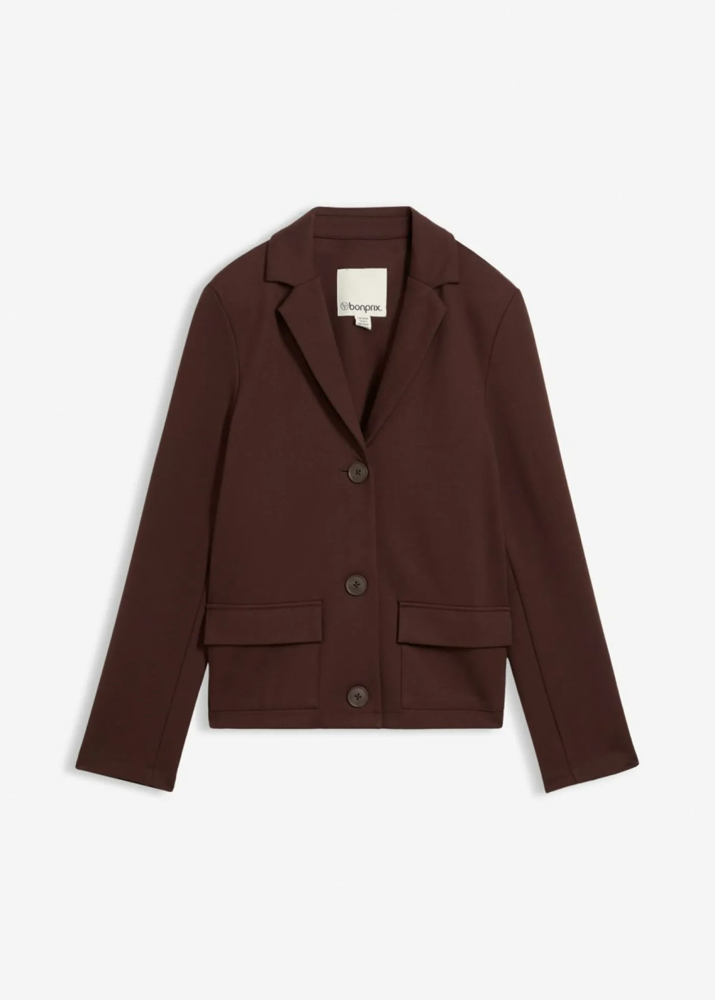 Americana con corte recto, cierre de botones y dos bolsillos en la parte delantera.