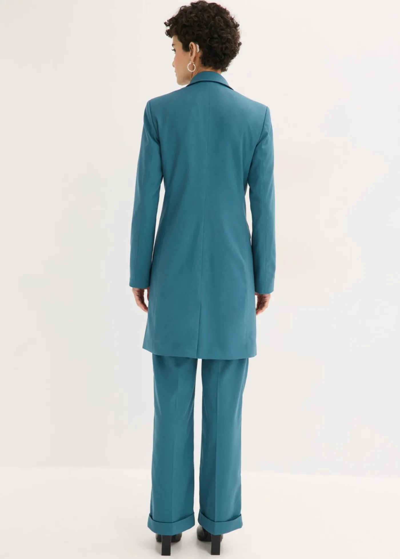 Elegante americana larga con escote en V.