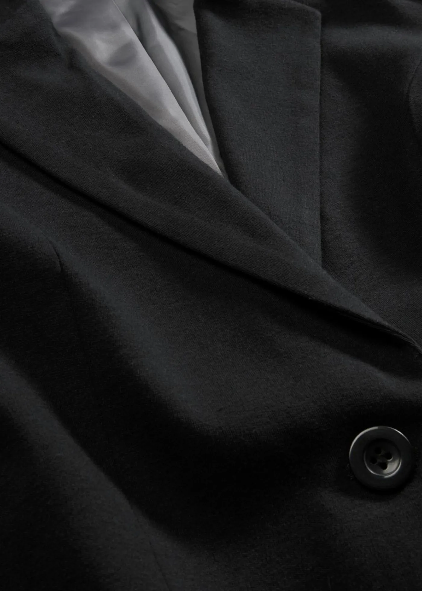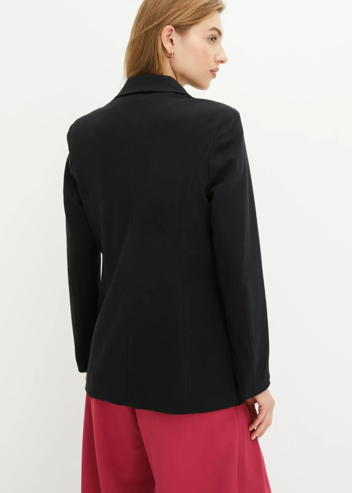 Americana larga de punto moderna con corte elegante. Largo de aprox. 73 cm en talla 42. Se puede lavar a máquina.