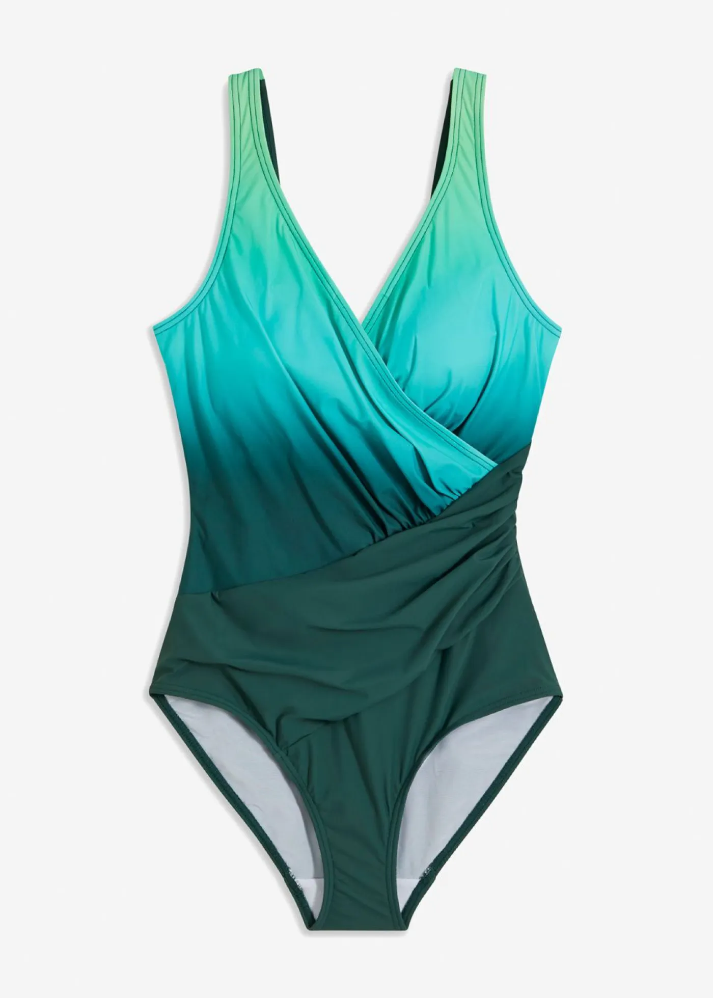 Bañador moldeador con efecto cruzado. Confeccionado en material moldeador para dar forma a la figura y con efecto envolvente. Con forro y copas suaves. Goma elástica en la zona bajo el pecho. Con forro moldeador. Cada prenda es única, por lo tanto, la impresión puede ser un poco diferente.