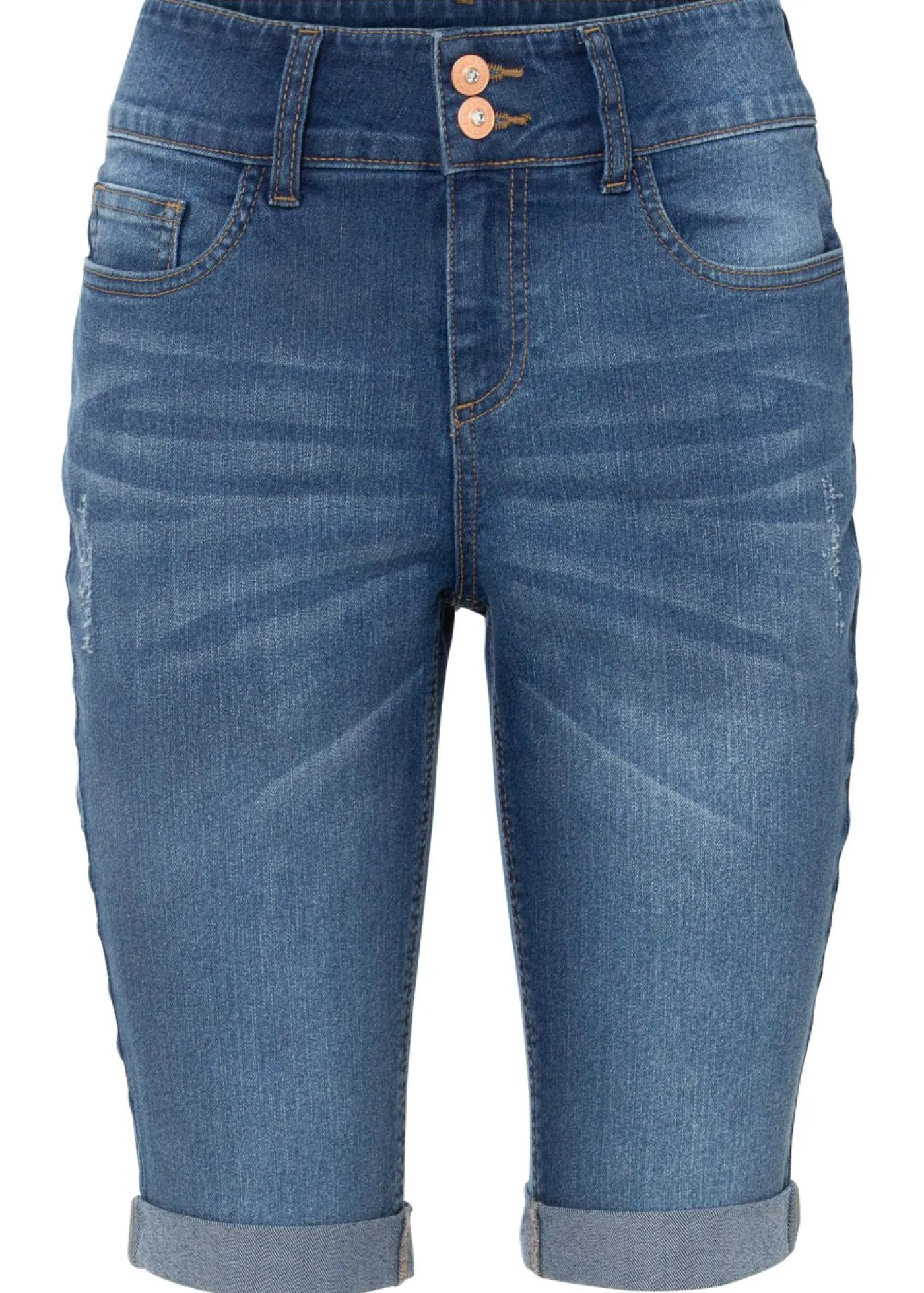Bermudas vaqueras cómodos con dobladillo vuelto. Con diseño de 5 bolsillos. También disponible en talla C. Largo interior de la pierna de aprox. 26,5 cm en talla C 38 y de aprox. 29,5 cm en talla N 38.