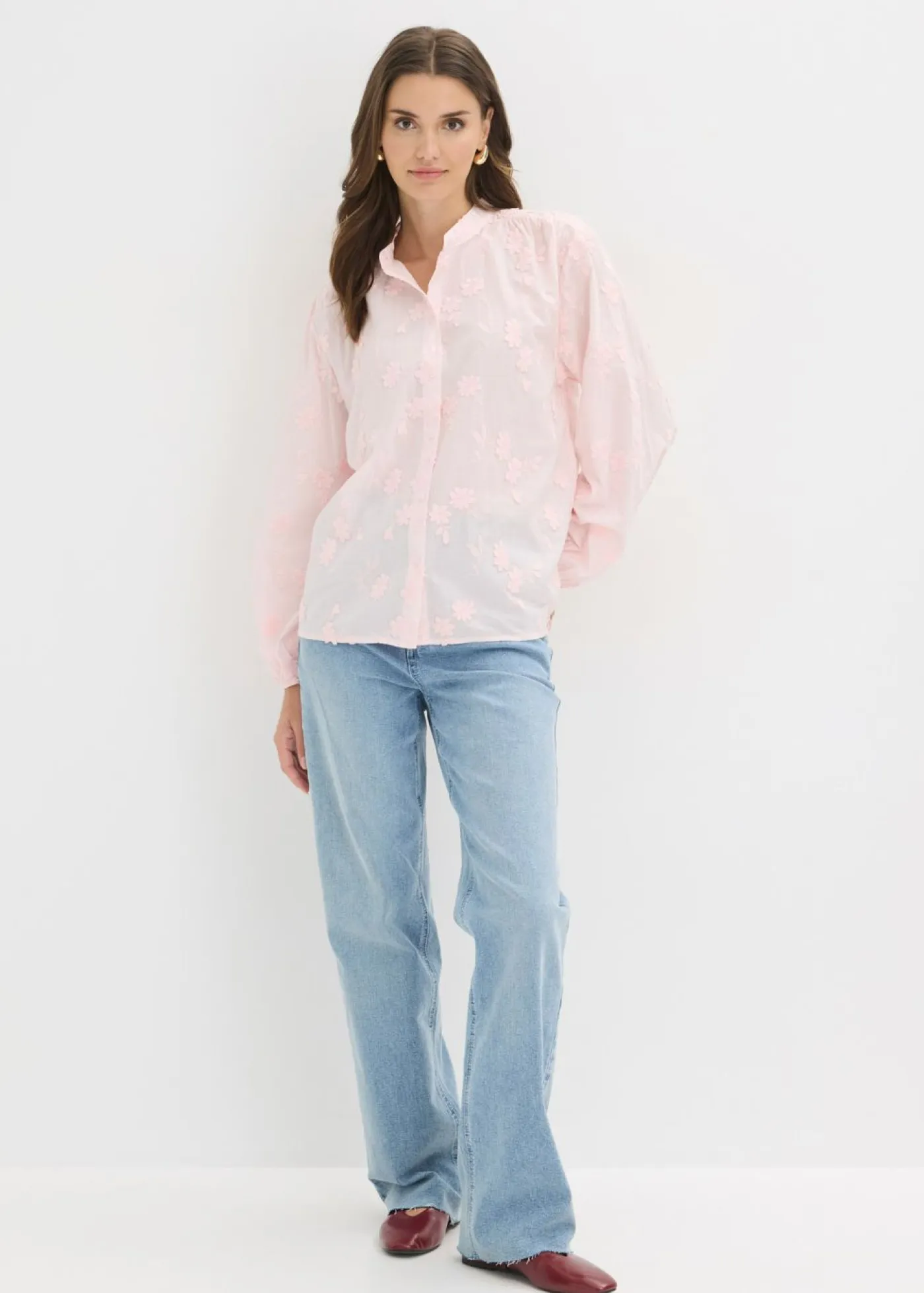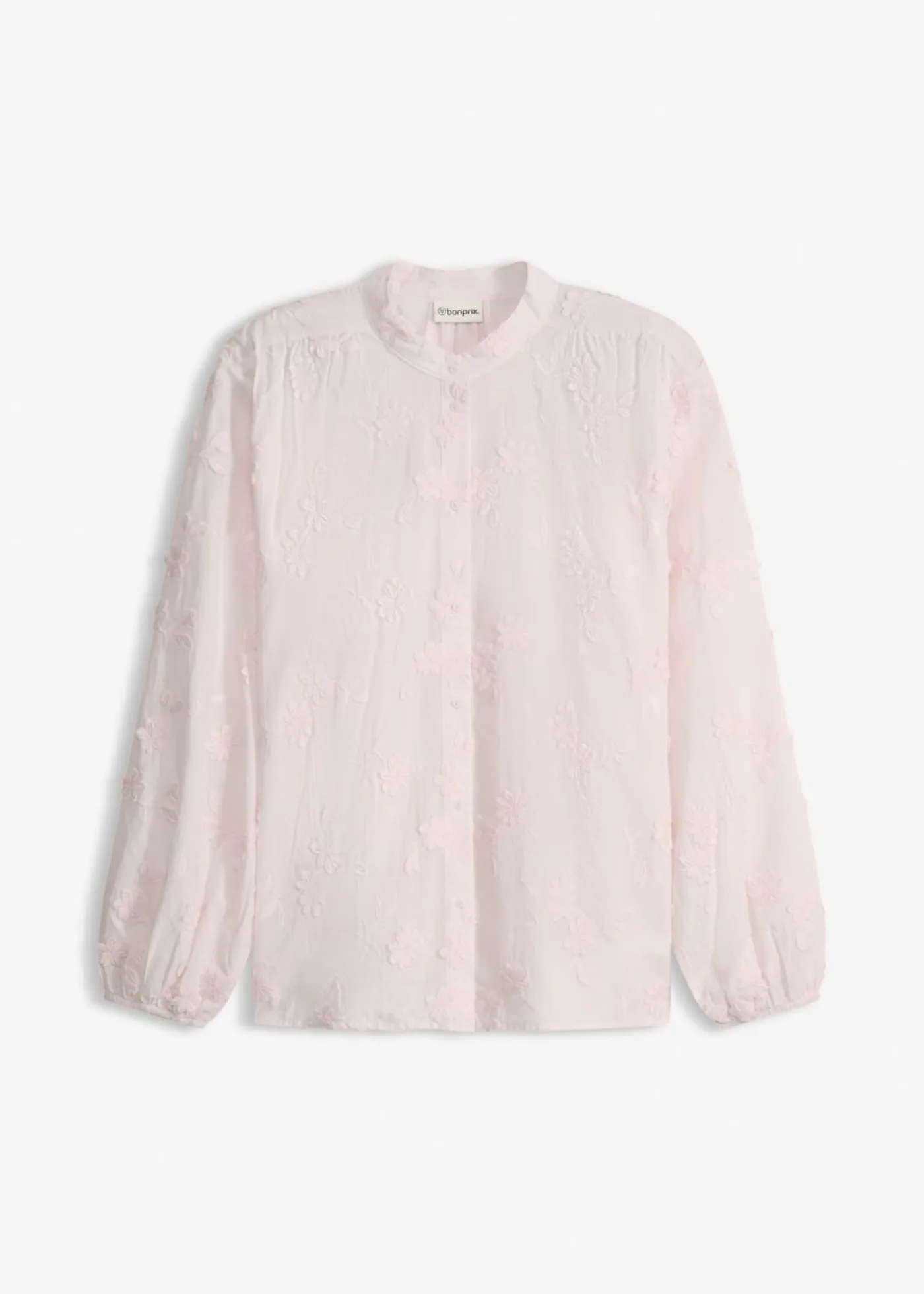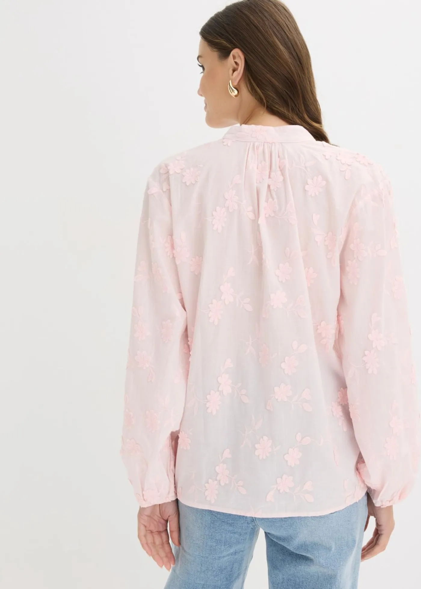 Blusa ligeramente transparente con aplicaciones de flores.