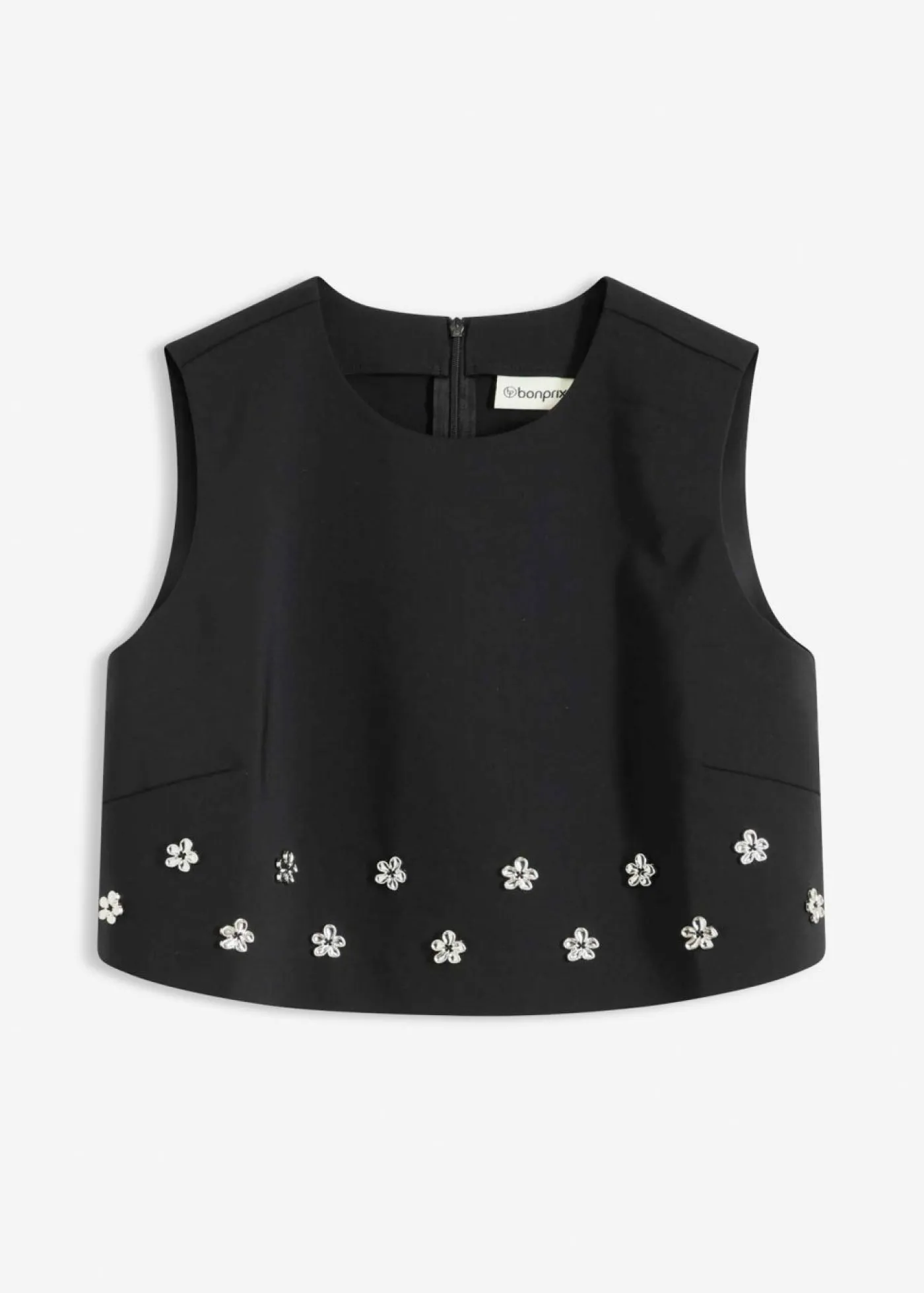 Top corto sin mangas con piedras decorativas.