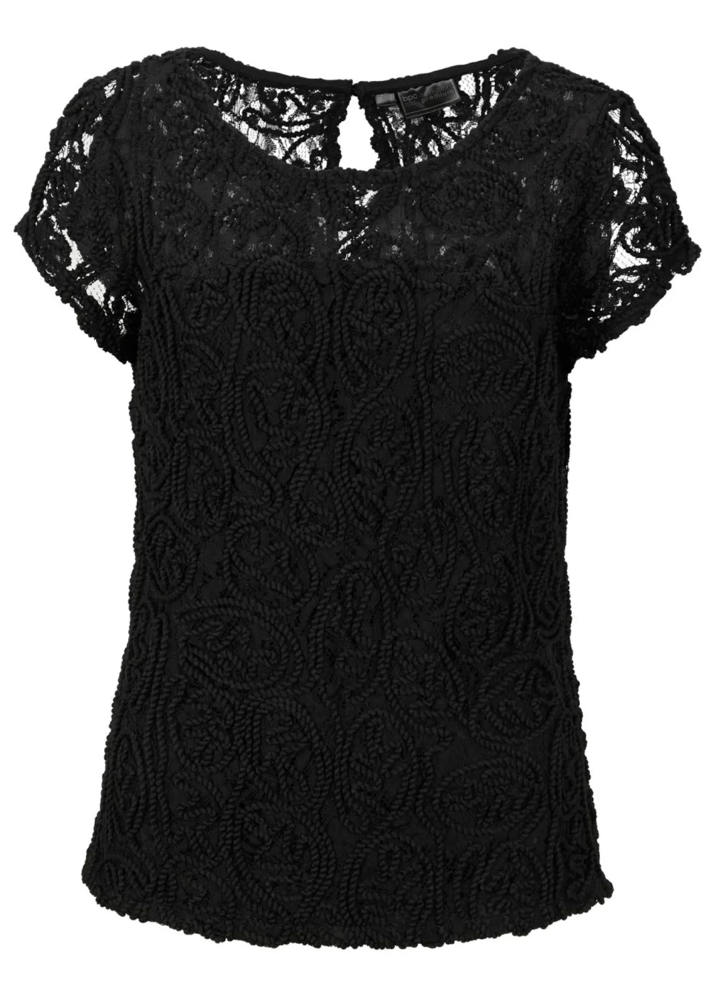Elegante blusa de encaje. Esta elegante blusa de encaje con cordón se puede combinar de muchas maneras gracias a su diseño sofisticado.