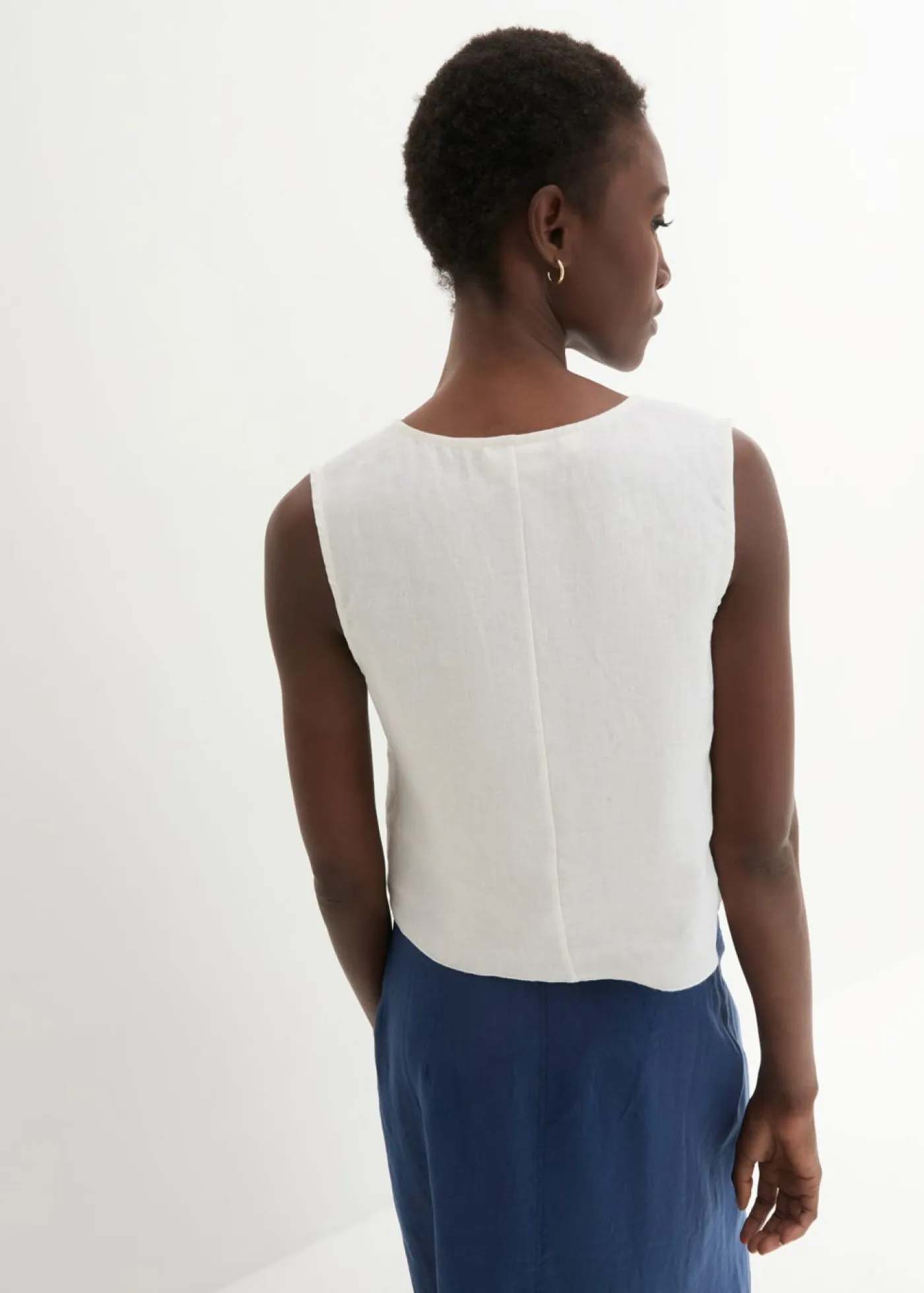 Blusa moderna de lino sin mangas.