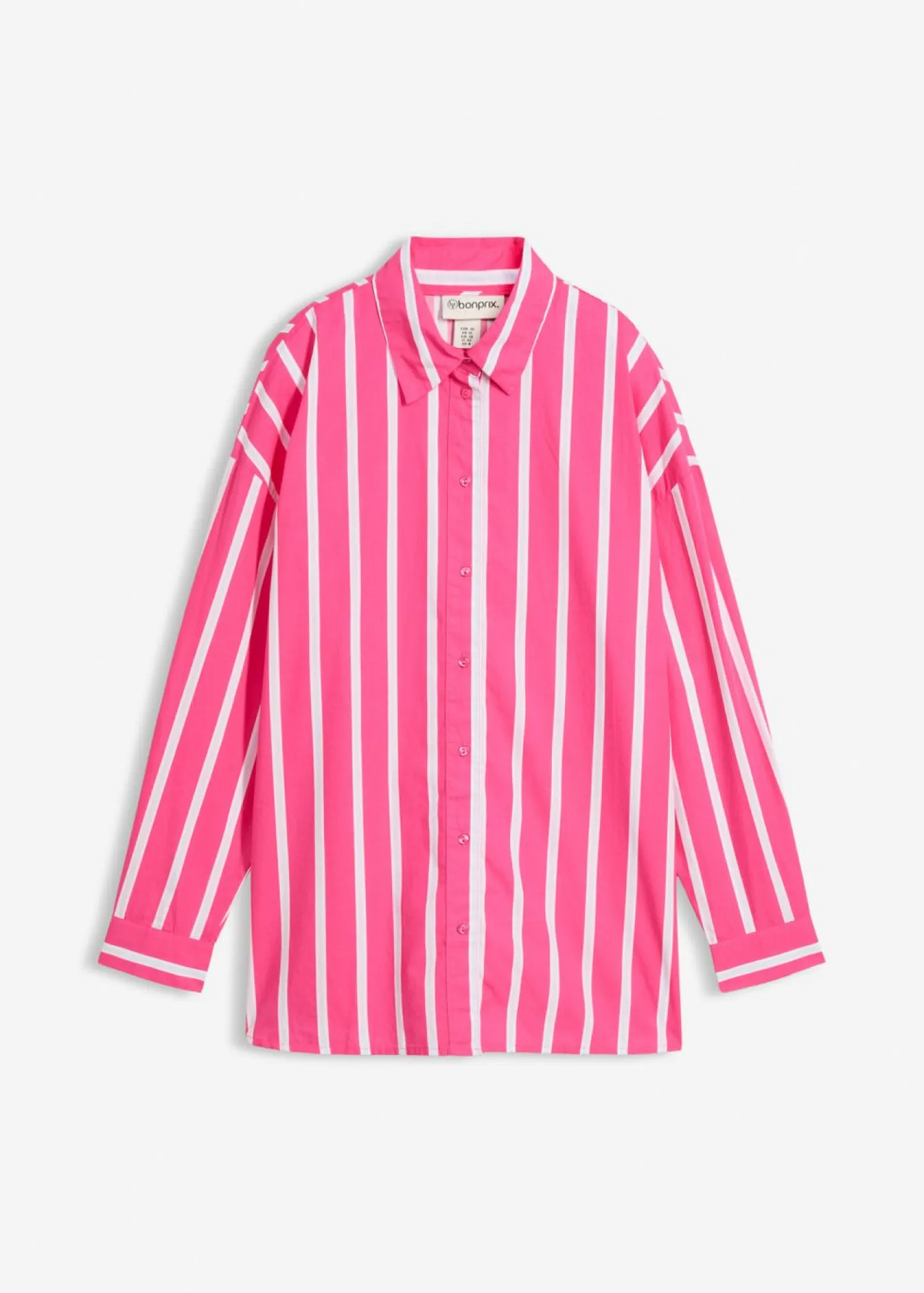 Blusa oversize de manga larga, con botones y cuello clásico. Con detalle ajustable en la espalda para regular el ancho. Largo de aprox. 56 cm en talla 42. Se puede lavar a máquina.