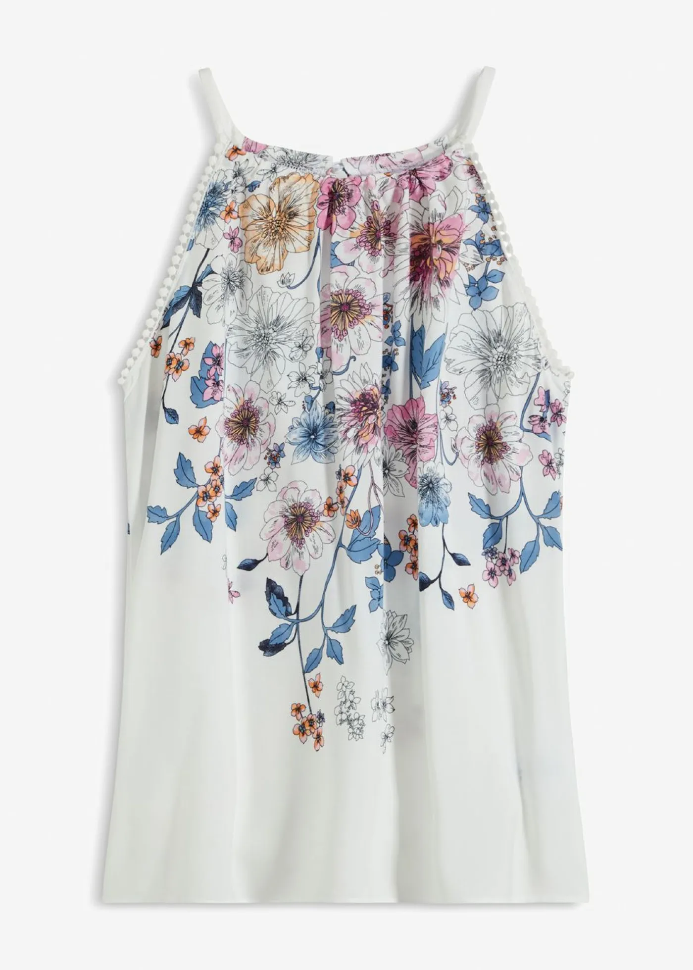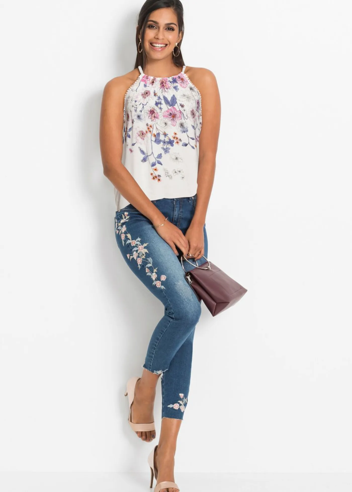Encantador top con cuello halter. Top para verano. El top con cuello halter está estampado.