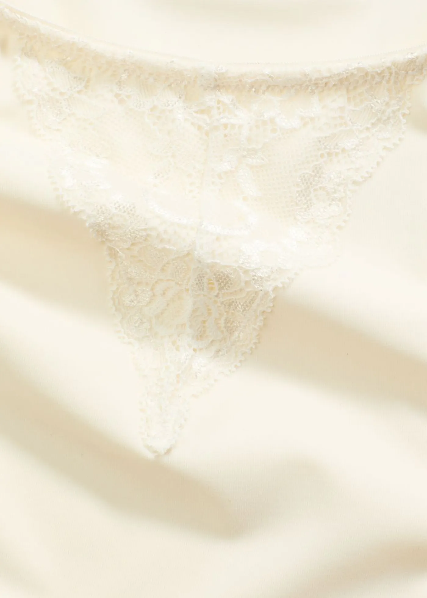 | Material | Material externo: 55% elastano, 45% poliamida (reciclado); Forro: 80% poliamida, 20% elastano; Encaje: 87% poliamida, 13% elastano |