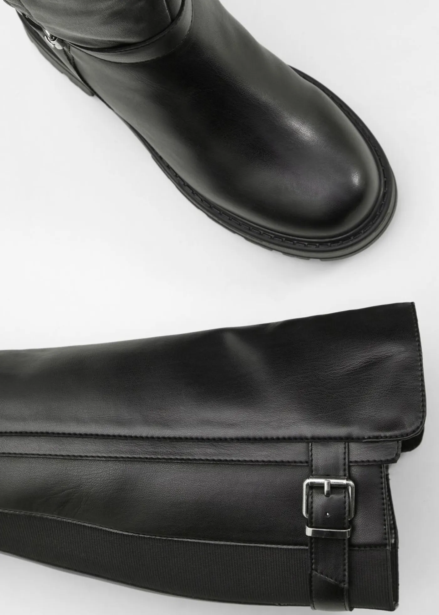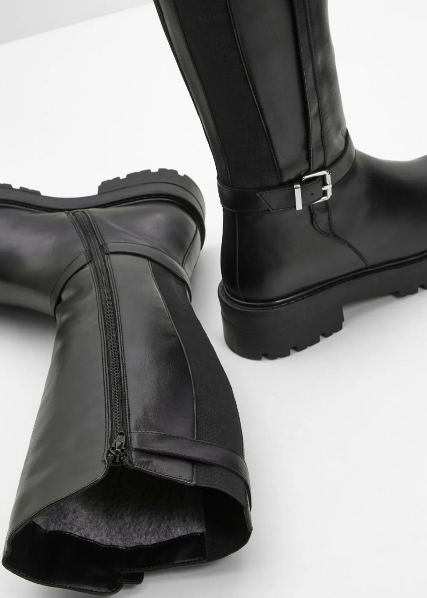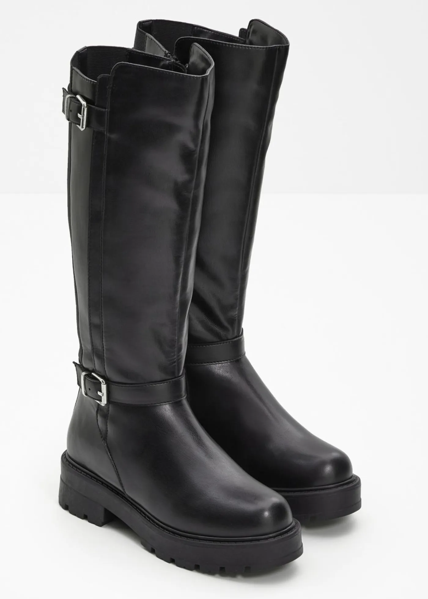 Botas con forro cálido, hebillas decorativas e insertos elásticos.