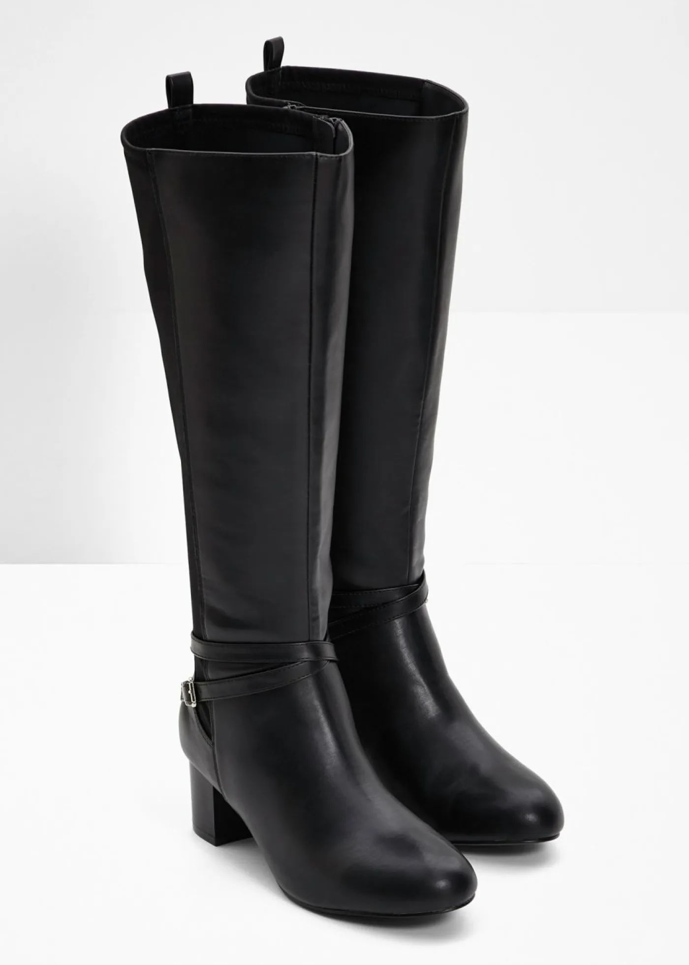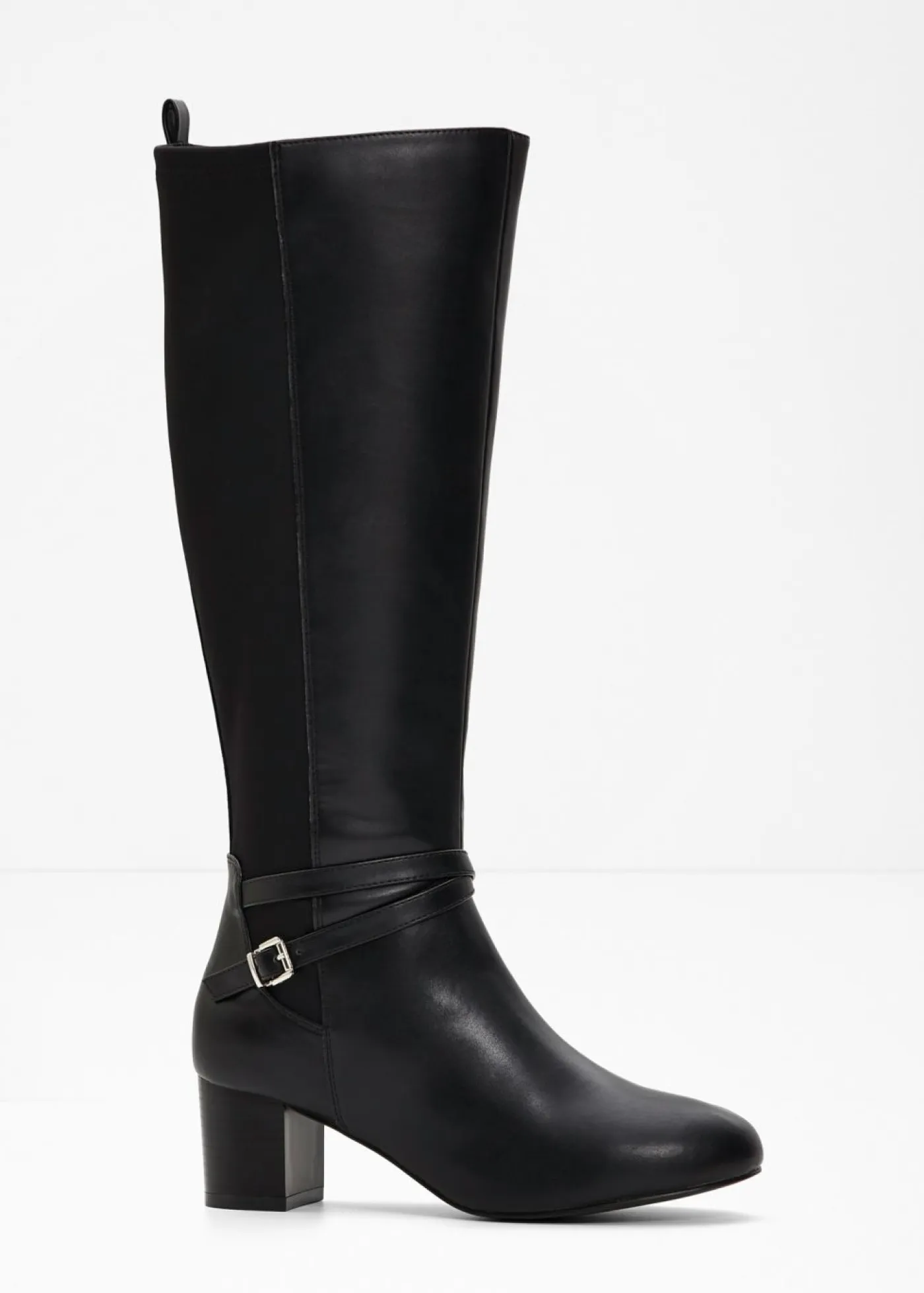 Botín atemporal de caña ancha con hebilla decorativa.