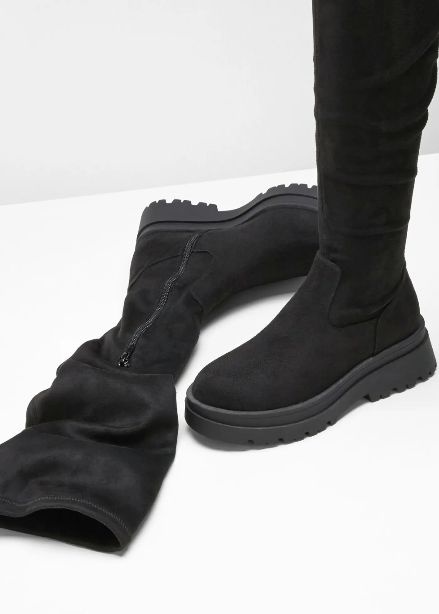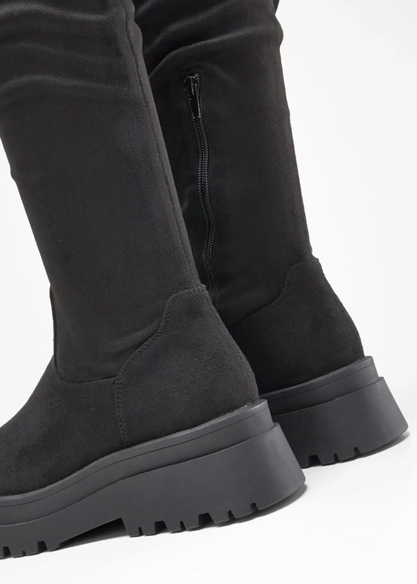 Botas altas con suela llamativa.