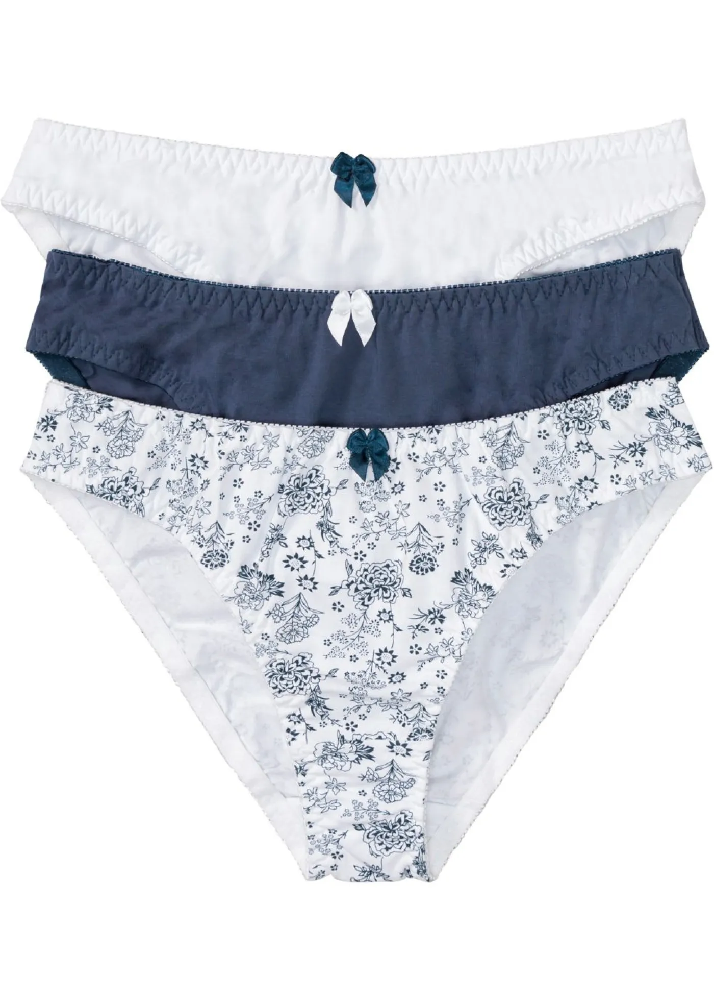 Pack de 3 braguitas. Tres braguitas de algodón elástico con lazo en la cintura.