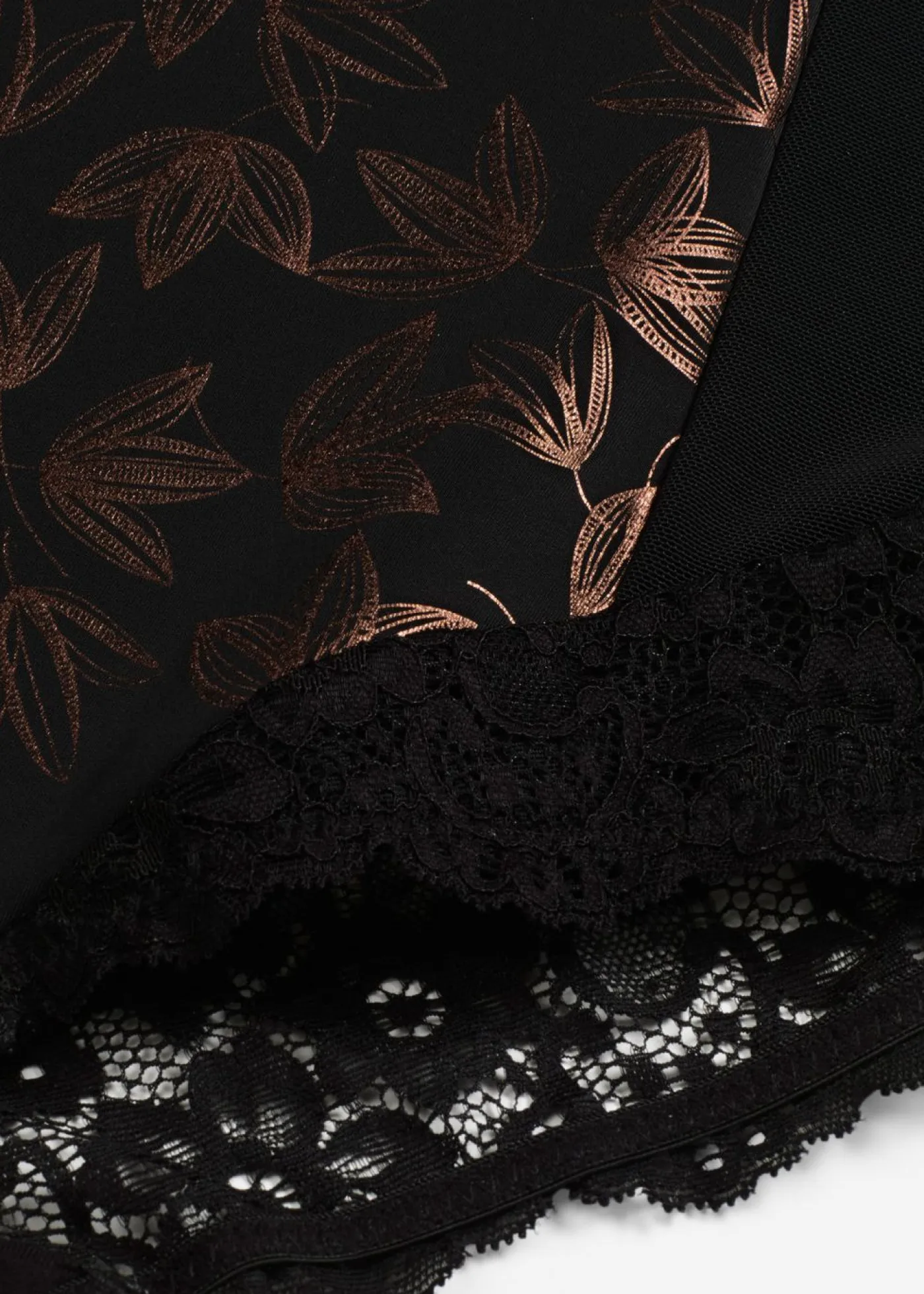| Material | Material externo: 80% poliamida, 20% elastano; Forro de malla: 86% poliamida, 14% elastano; Encaje: 85% poliamida, 9% elastano, 6% poliéster |