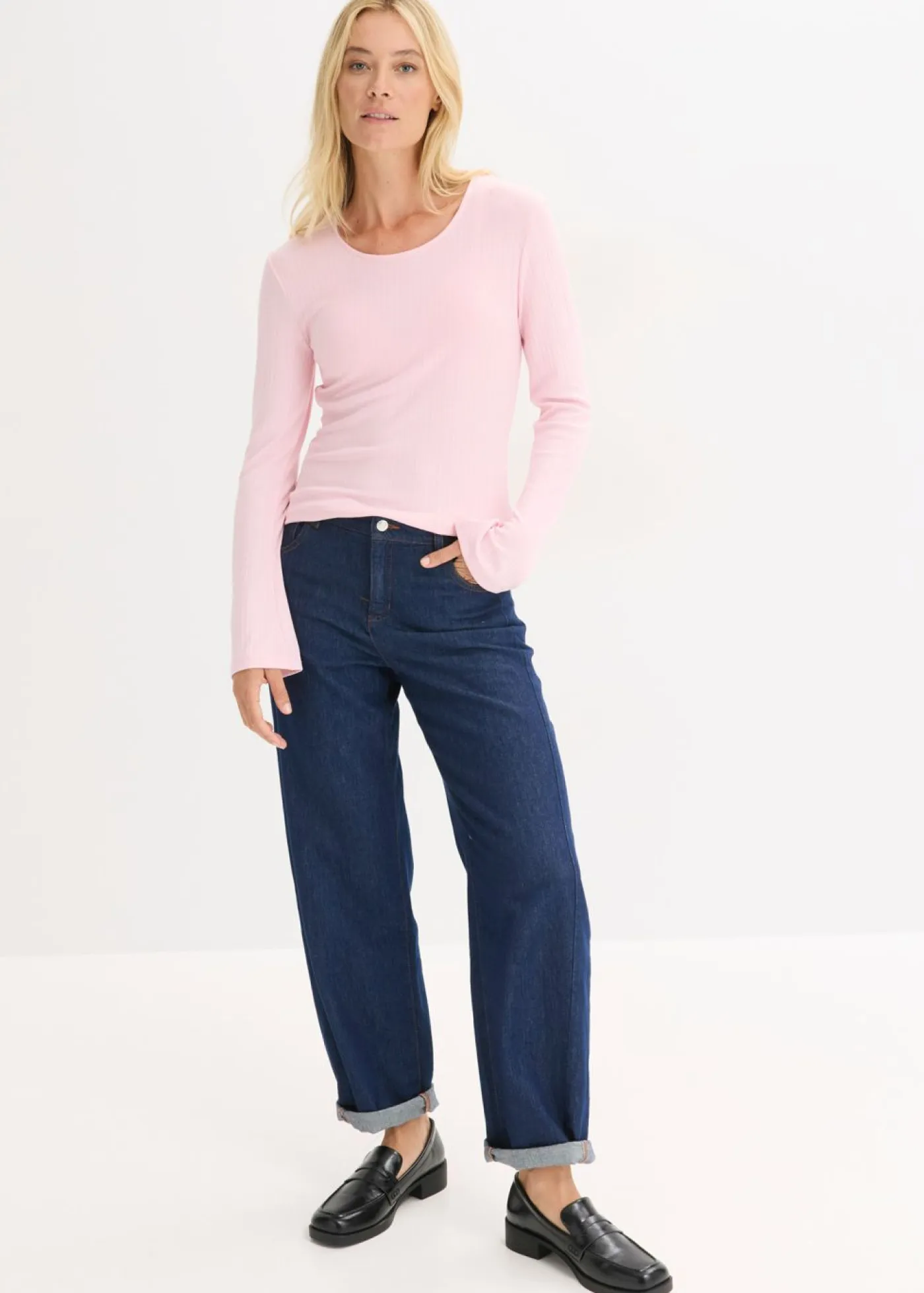Camiseta acanalada de manga larga fácil de combinar.