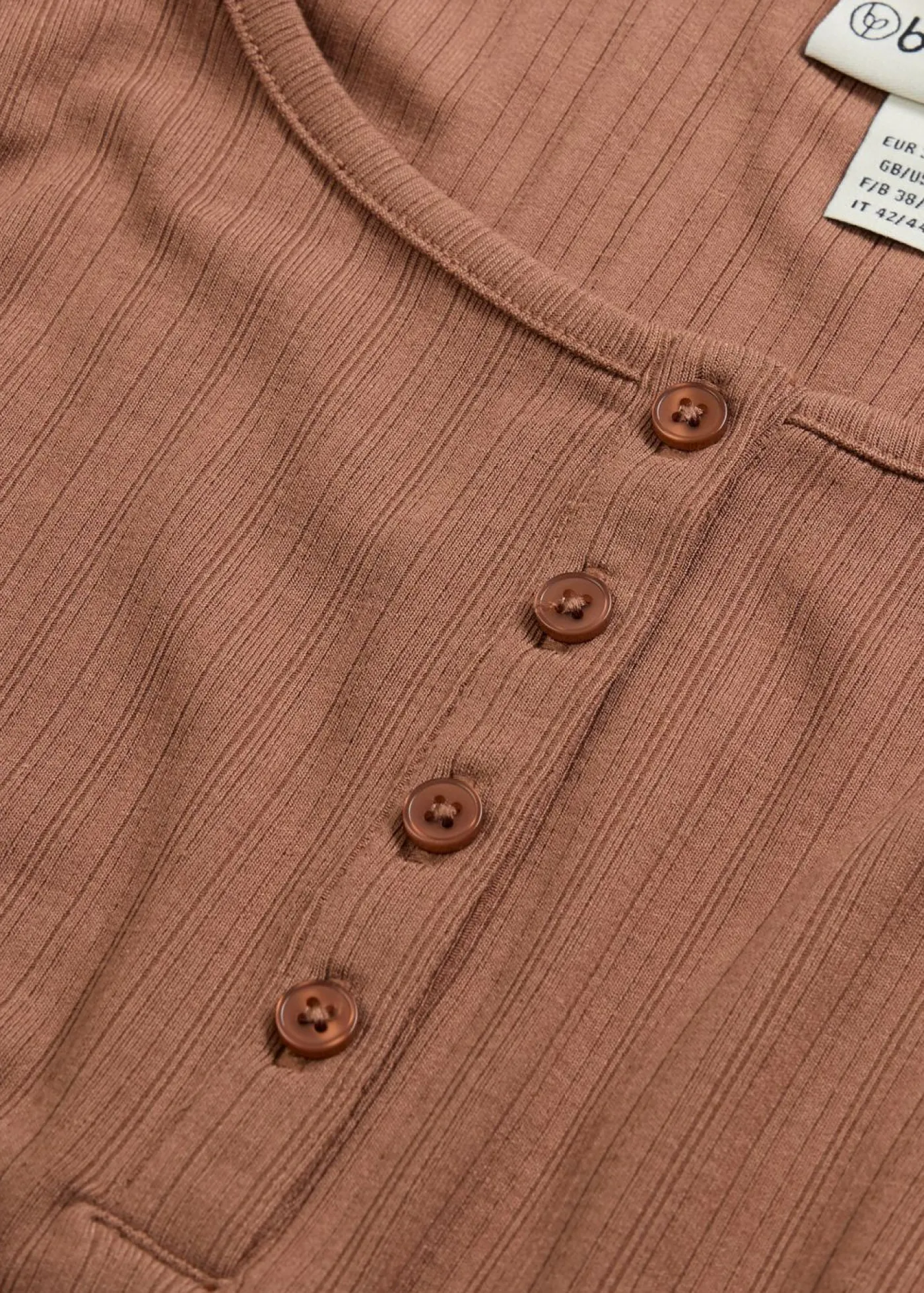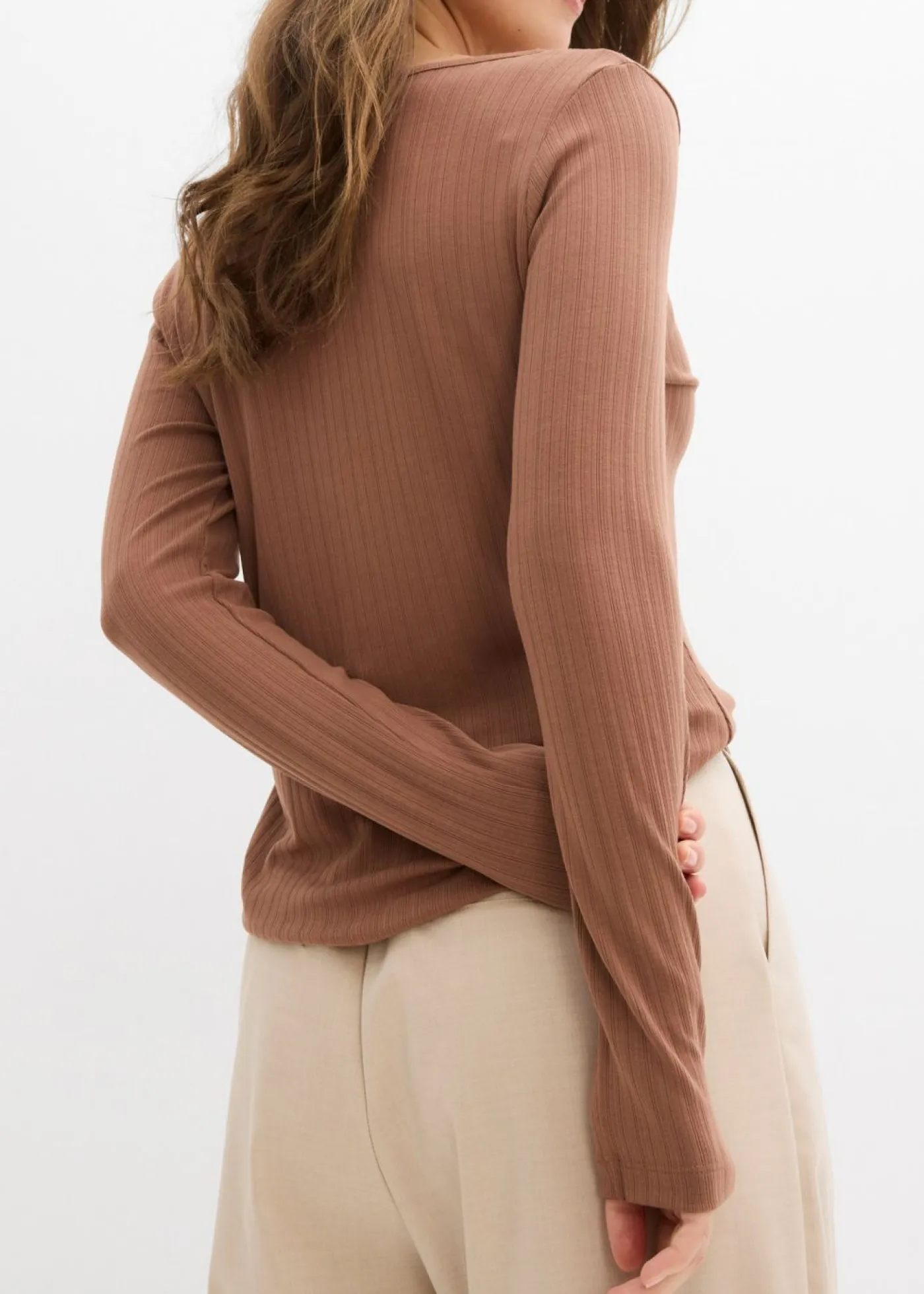 Camiseta versátil de manga larga fácil con botones decorativos.