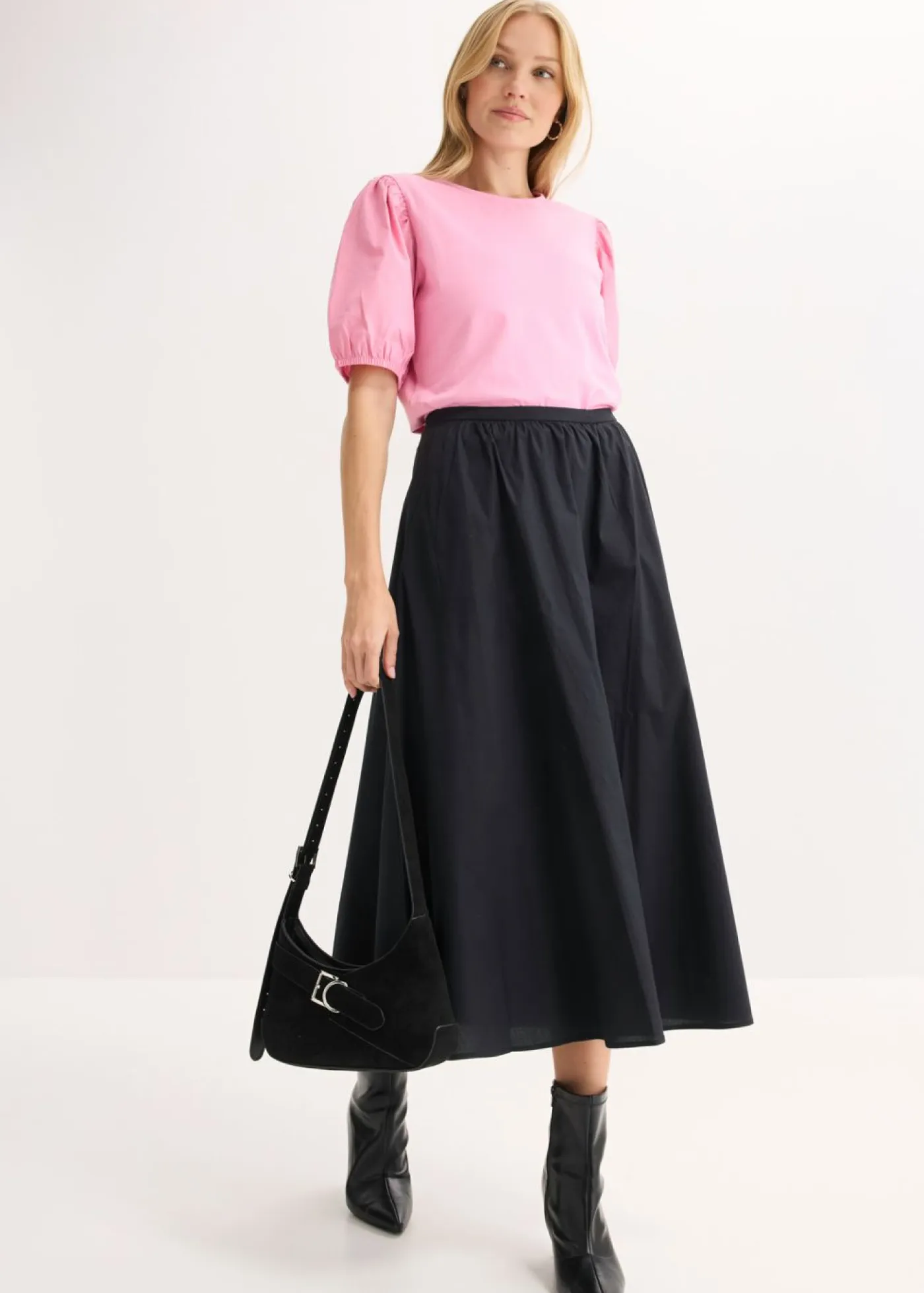 Camiseta de punto suave y mangas abullonadas con goma elástica.