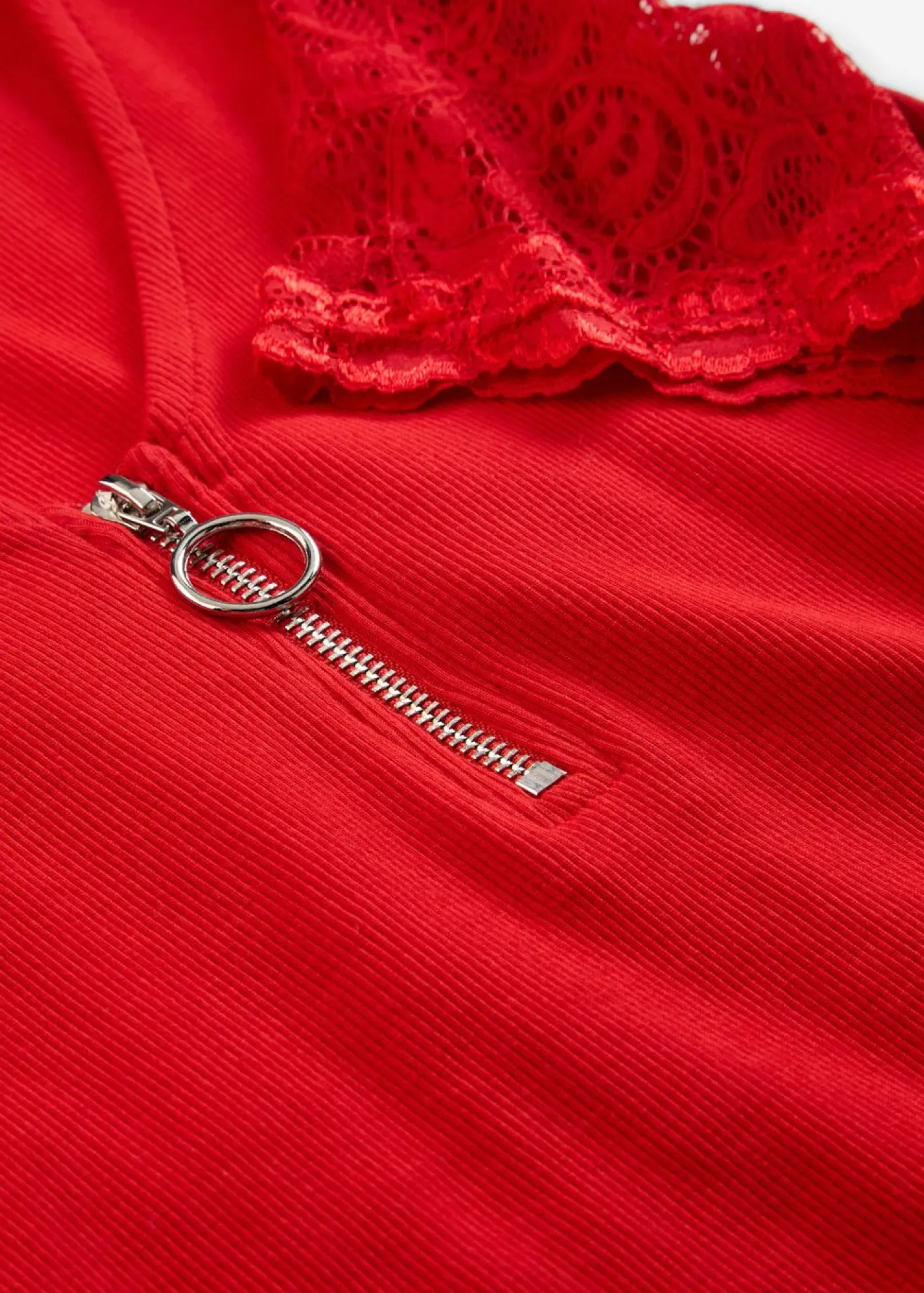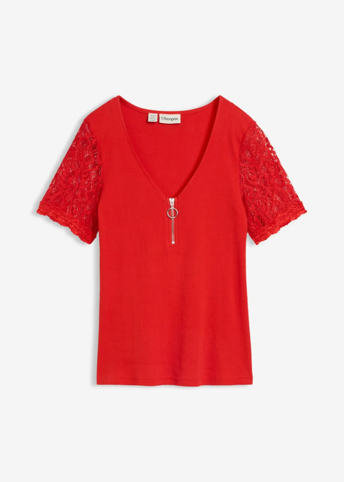Bonita camiseta de corte ajustado y encaje. Moderna camiseta de canalé con cremallera. Largo de aprox. 64 cm en talla 36/38.