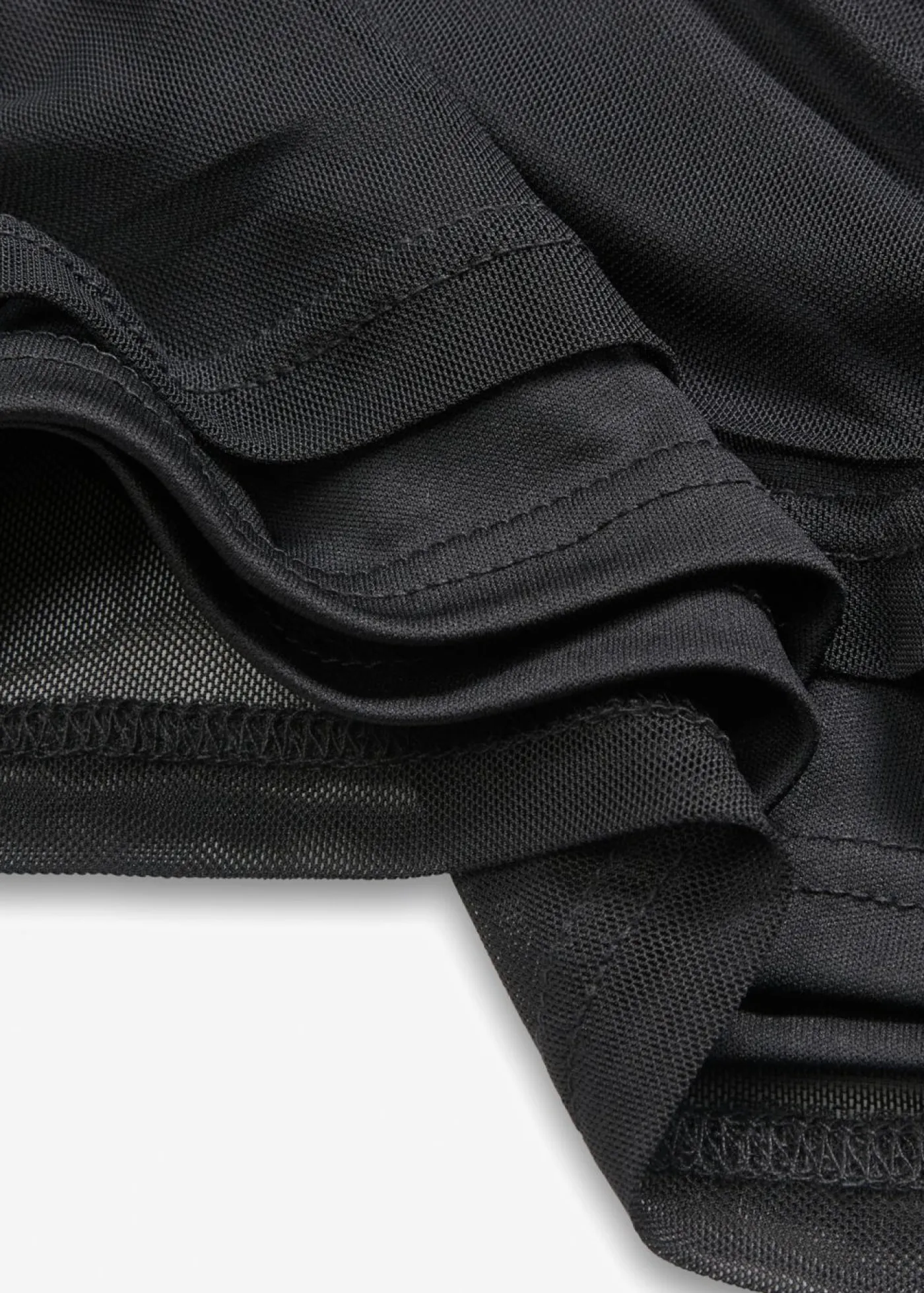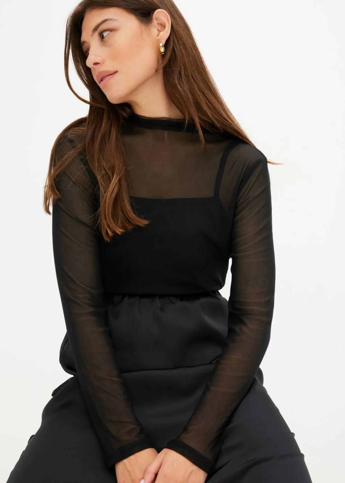 Camiseta ajustada de malla con manga larga y cuello alto.
