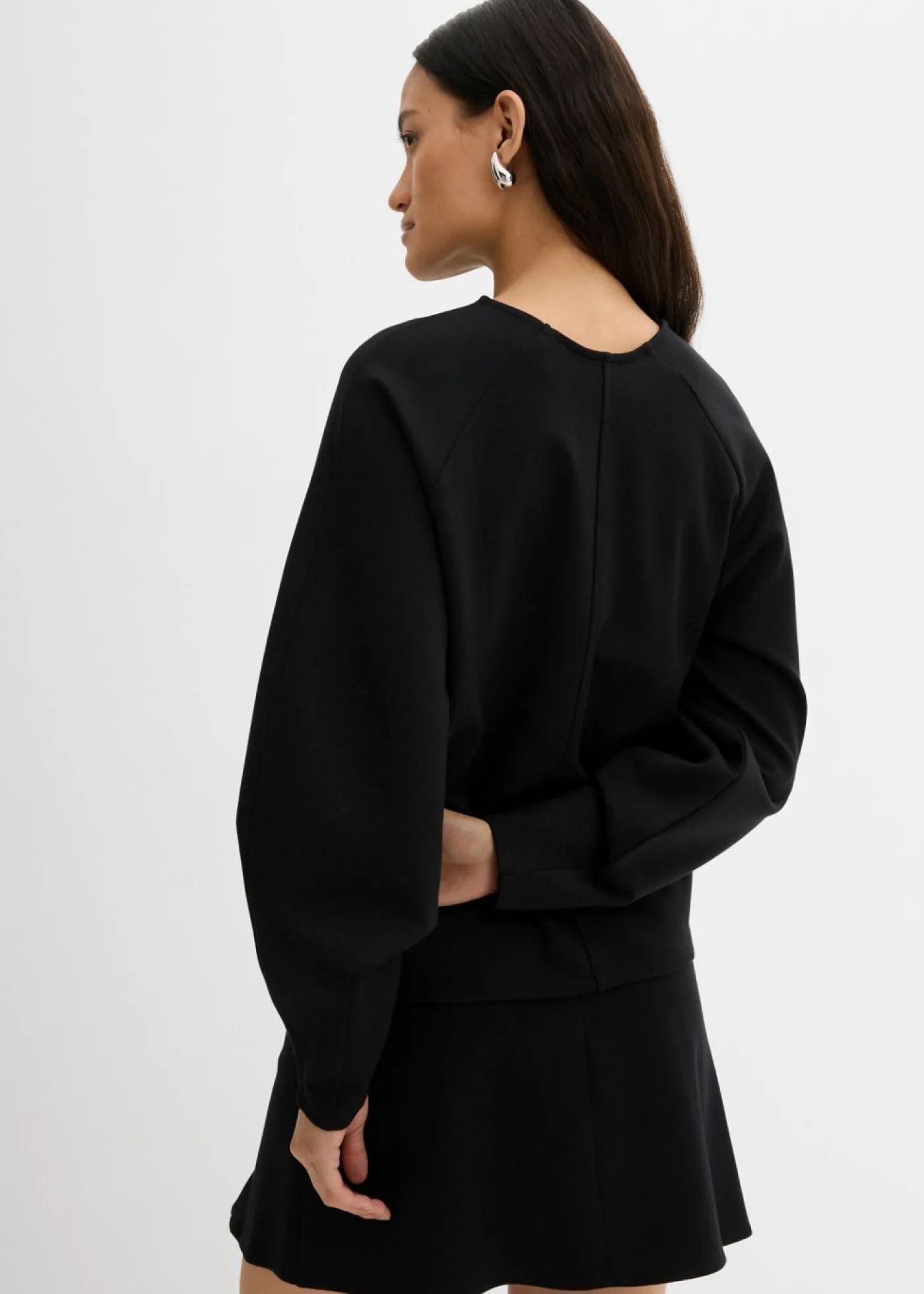 Camiseta de manga larga con corte recto, escote en V ribeteado y costura divisoria en la parte delantera y trasera.