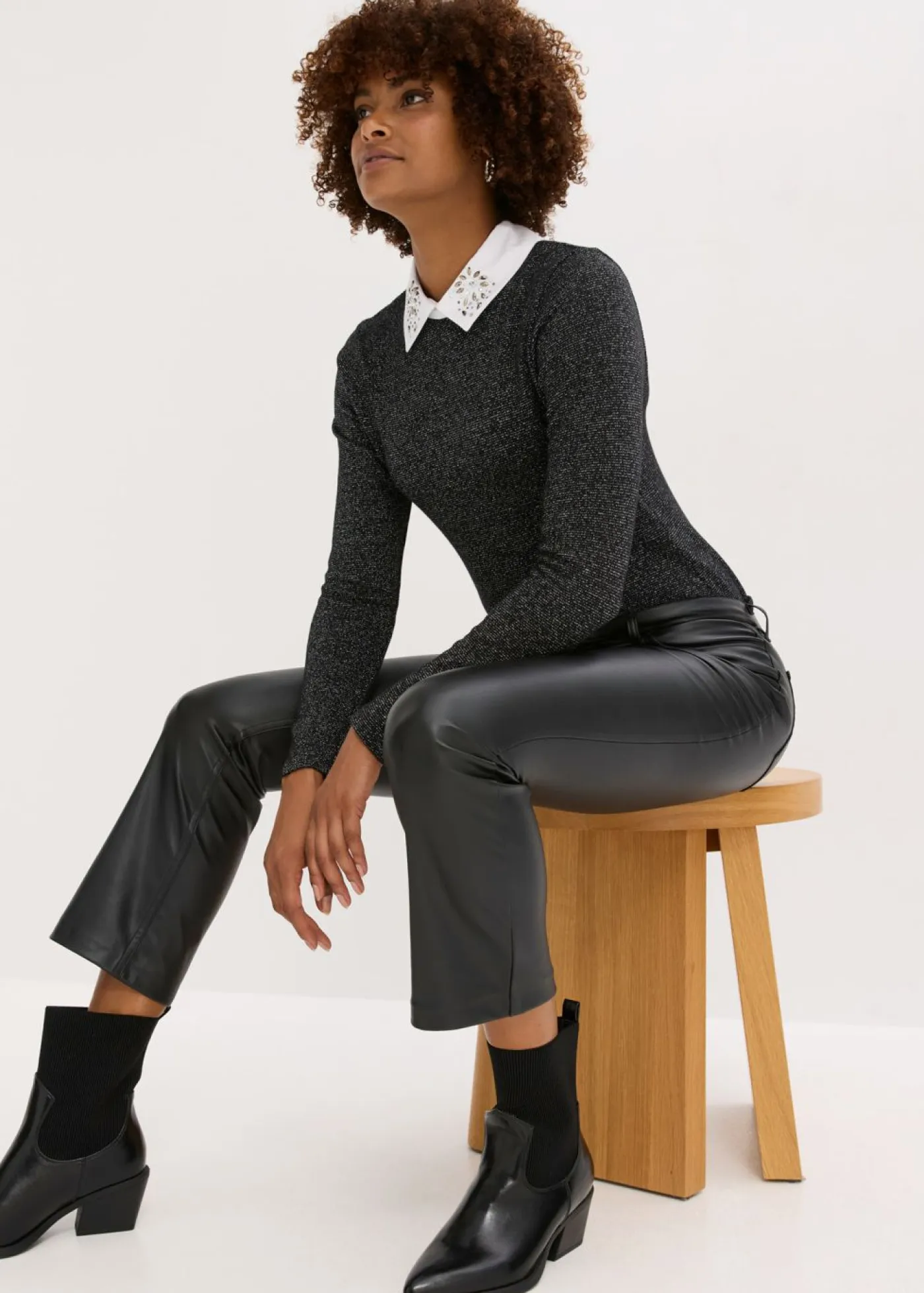 Camiseta moderna con cuello de blusa.