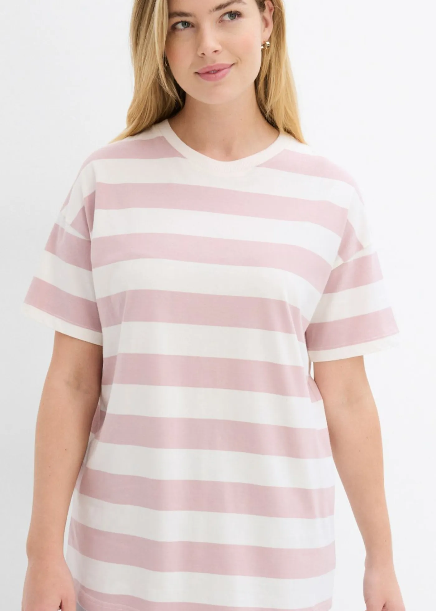 | Color | Rosa mate/blanco lana con rayas horizontales |