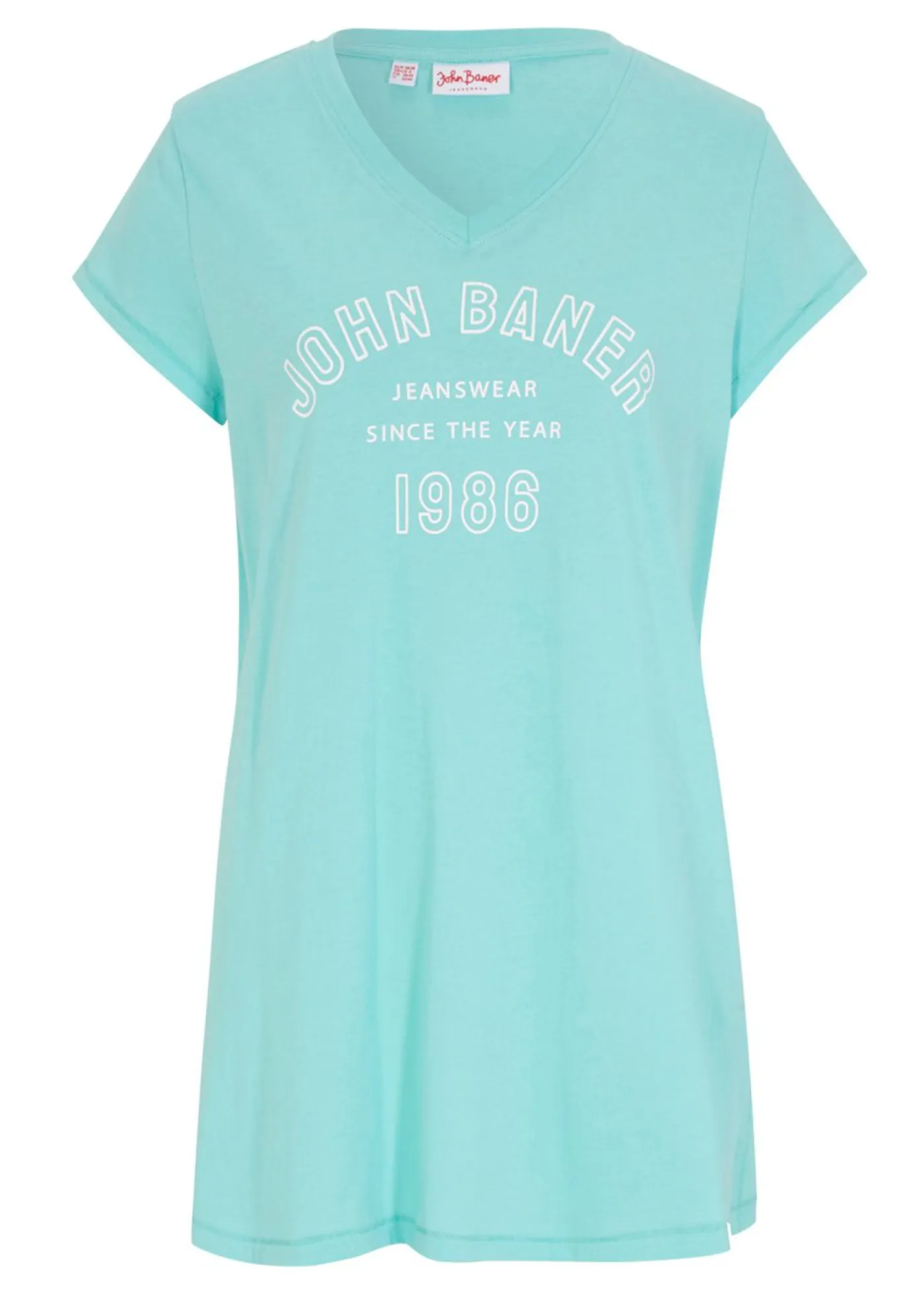 Camiseta larga holgada con aberturas y estampado. Largo total de aprox. 76 cm en talla 40/42. Se puede lavar a máquina.