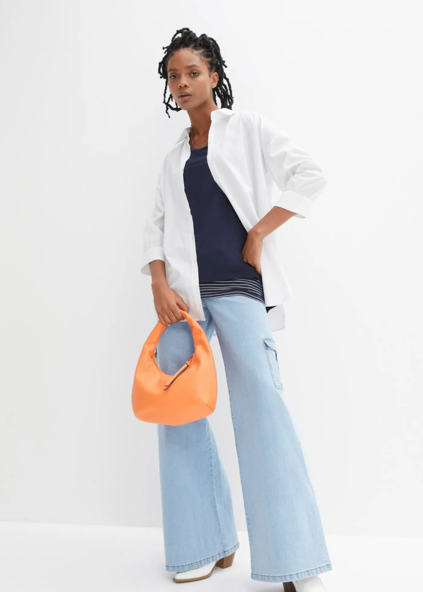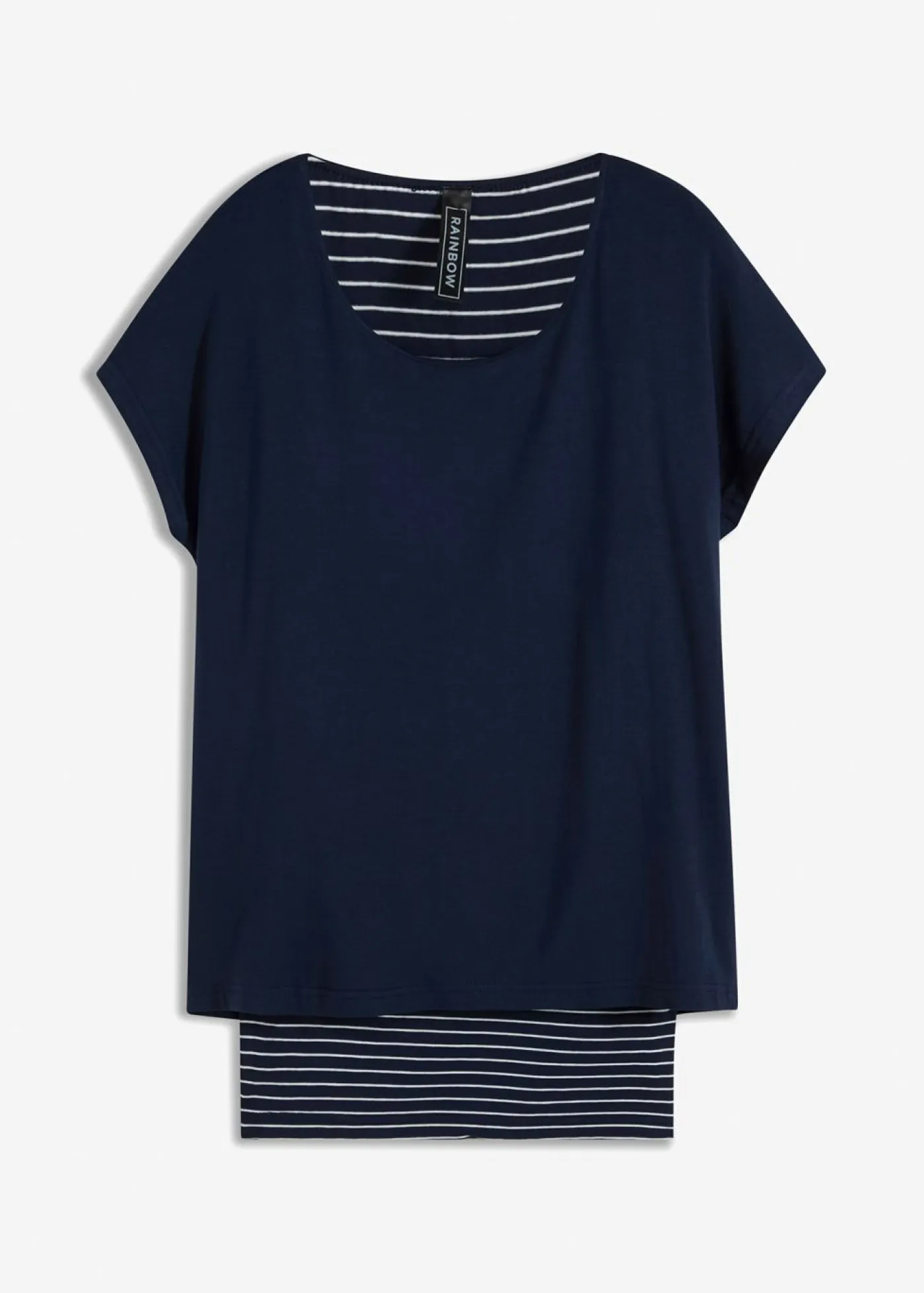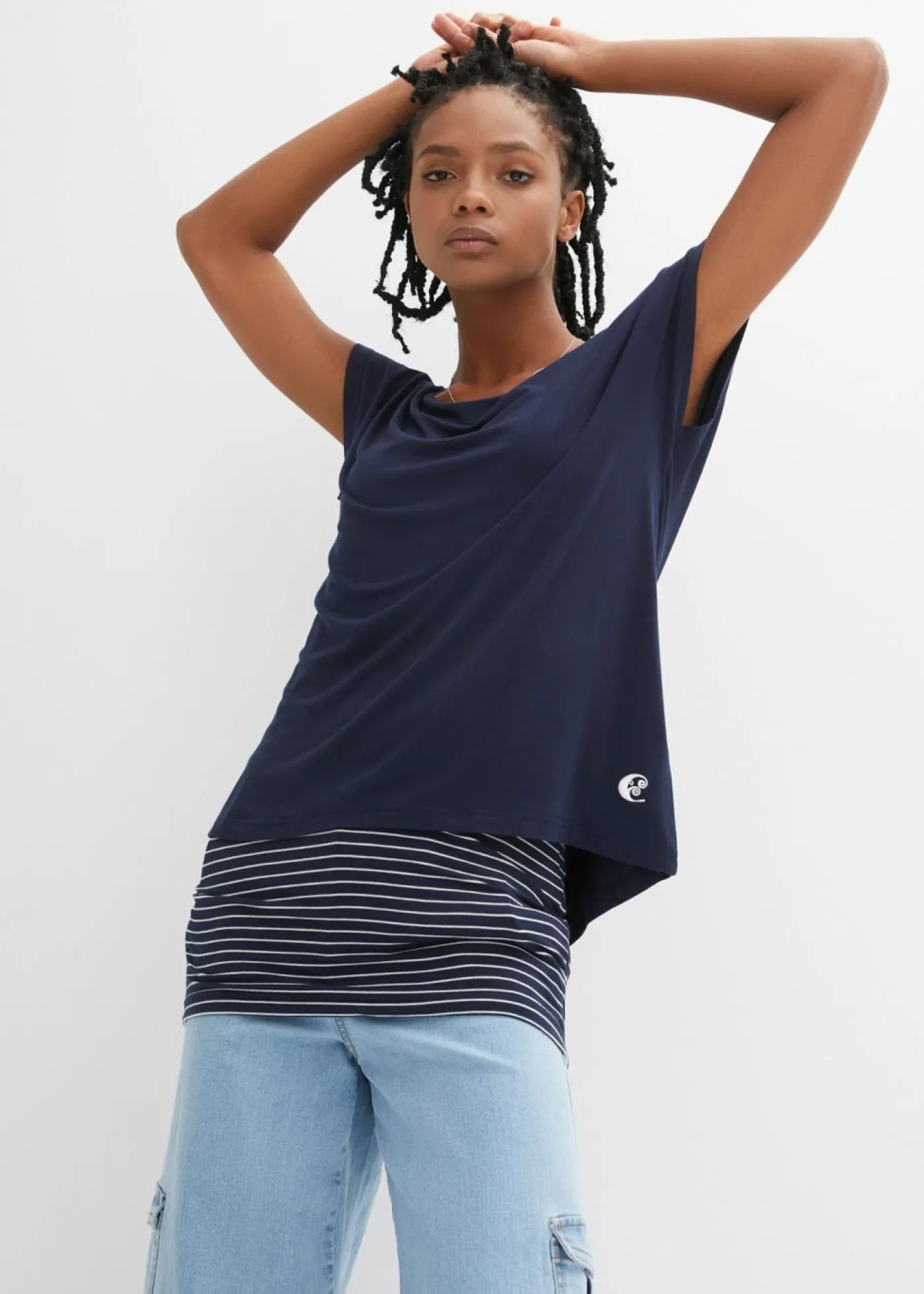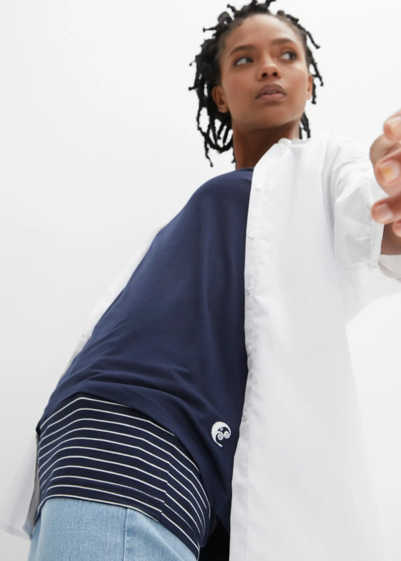 Camiseta larga en look de capas. Camisa de corte ancho con parte superior cosida. Largo de aprox. 70 cm en talla 40/42. Se puede lavar a máquina.