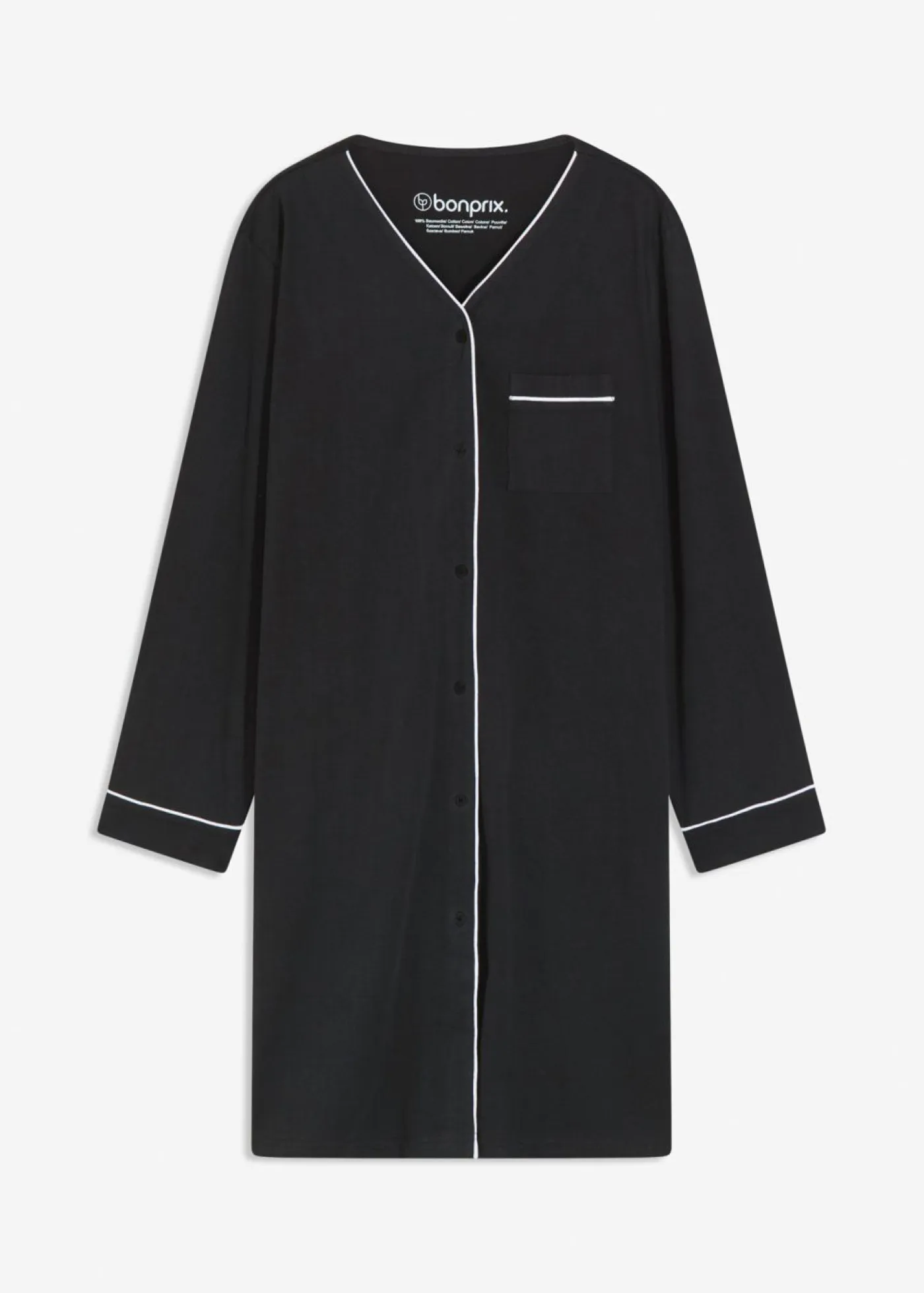 Camisón con forma en A, mangas anchas, botones y un bolsillo en el pecho.