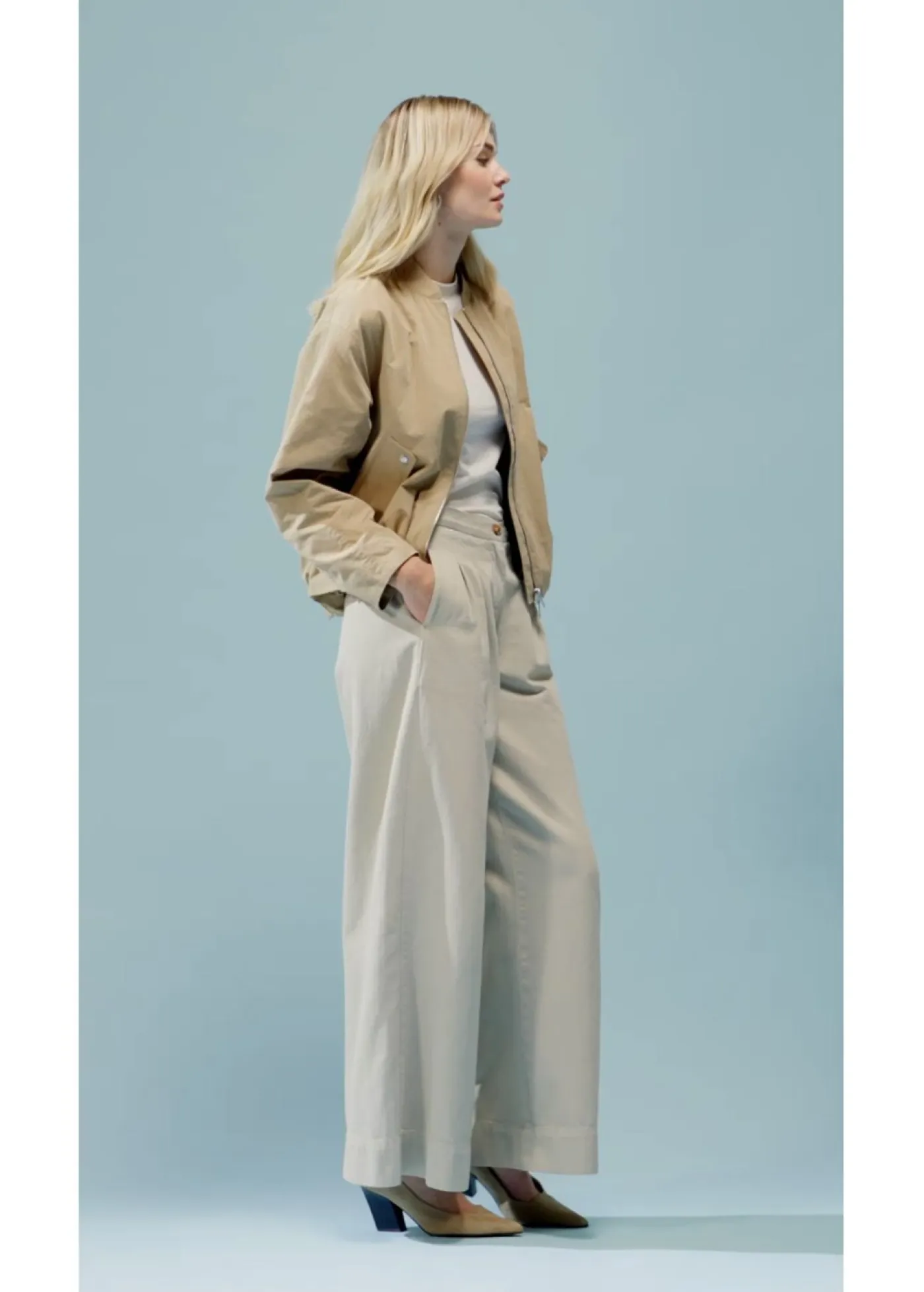 Cazadora informal con bolsillos inclinados de botones a presión.