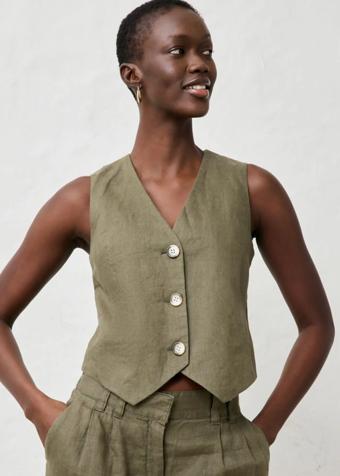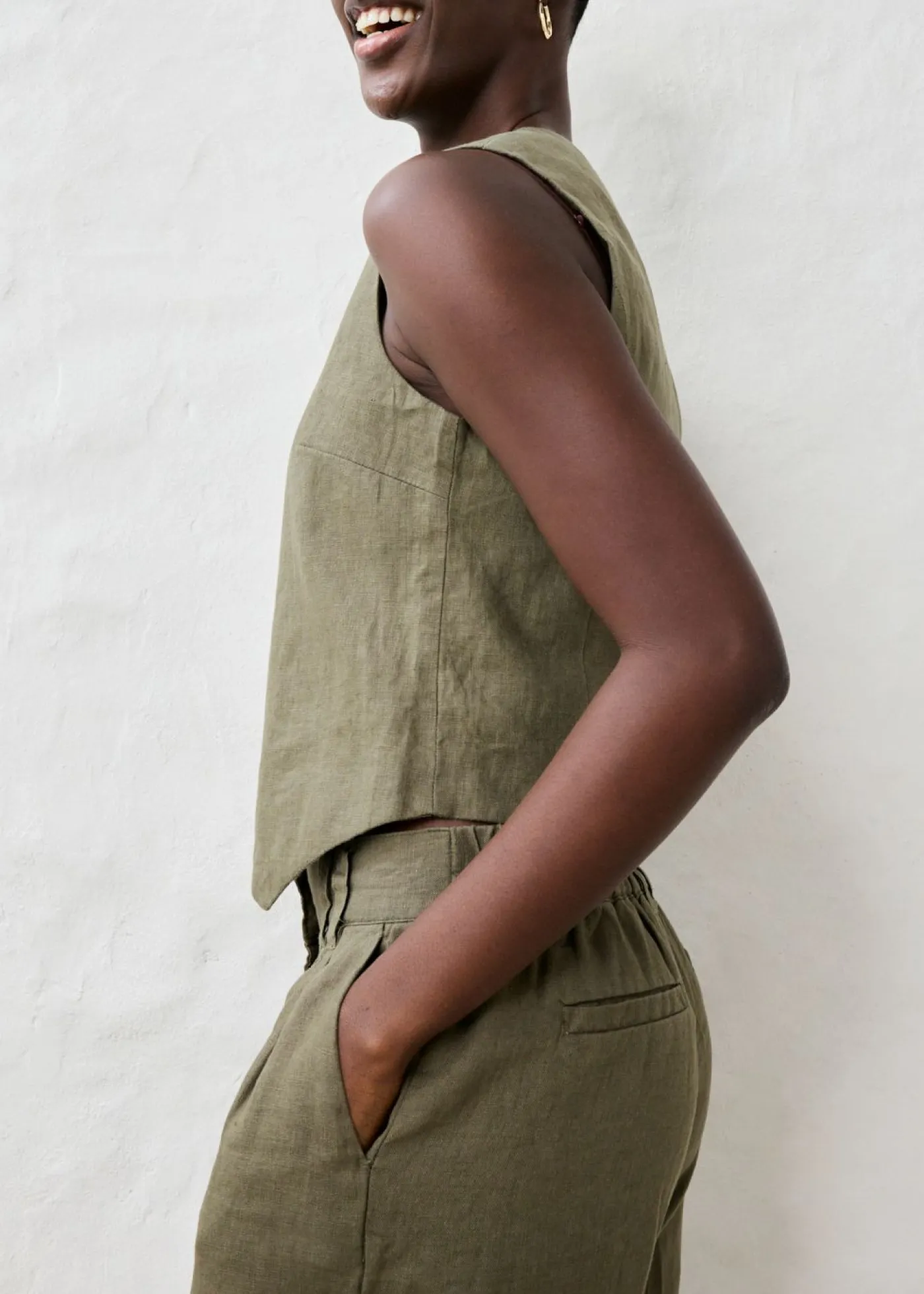 Chaleco de lino de calidad con forro de algodón agradable al tacto.