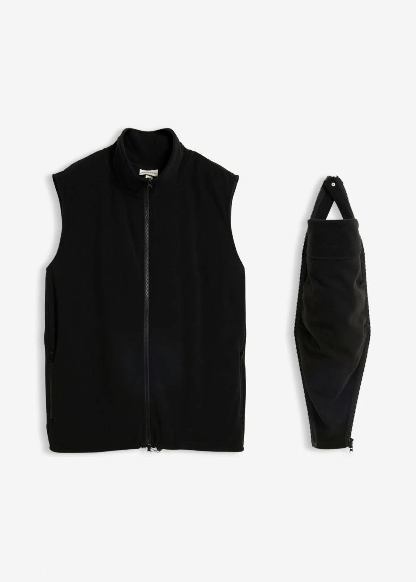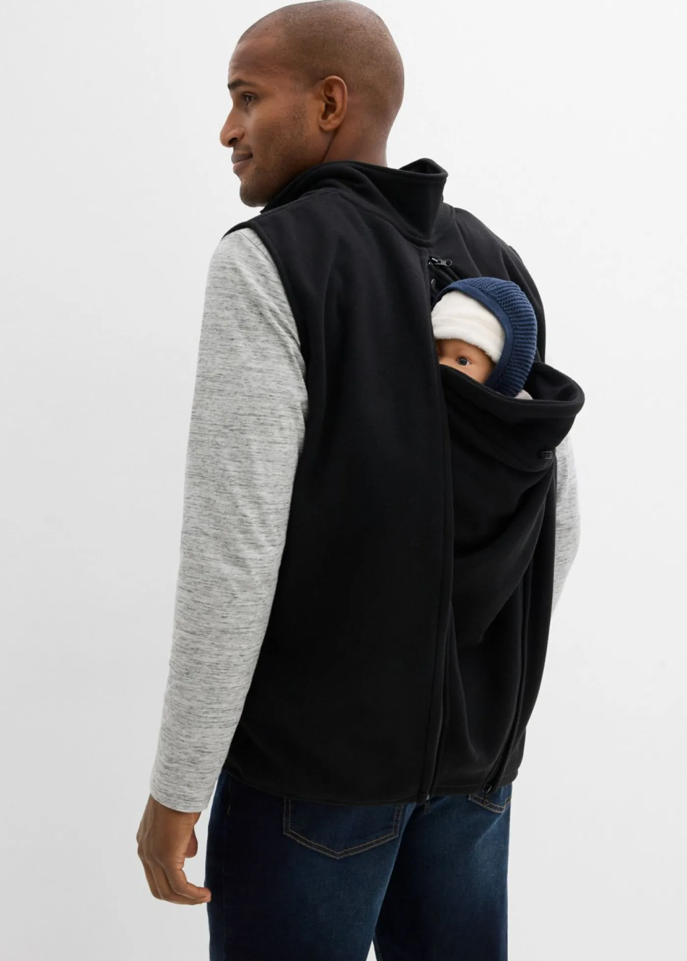Chaleco polar con doble función de porteo y prácticos bolsillos con cremallera. Chaleco funcional con cuello alto y un inserto de porteo para el bebé El inserto de porteo se puede fijar tanto en la parte delantera como en la trasera. La función de porteo trasero resulta ideal para niños mayores y más pesados. El inserto para bebés cuenta con un pequeño reposacabezas con cordón ajustable. Los objetos cotidianos se pueden transportar de forma segura en los bolsillos con cremallera. Sin los insertos, se puede usar como un chaleco normal.