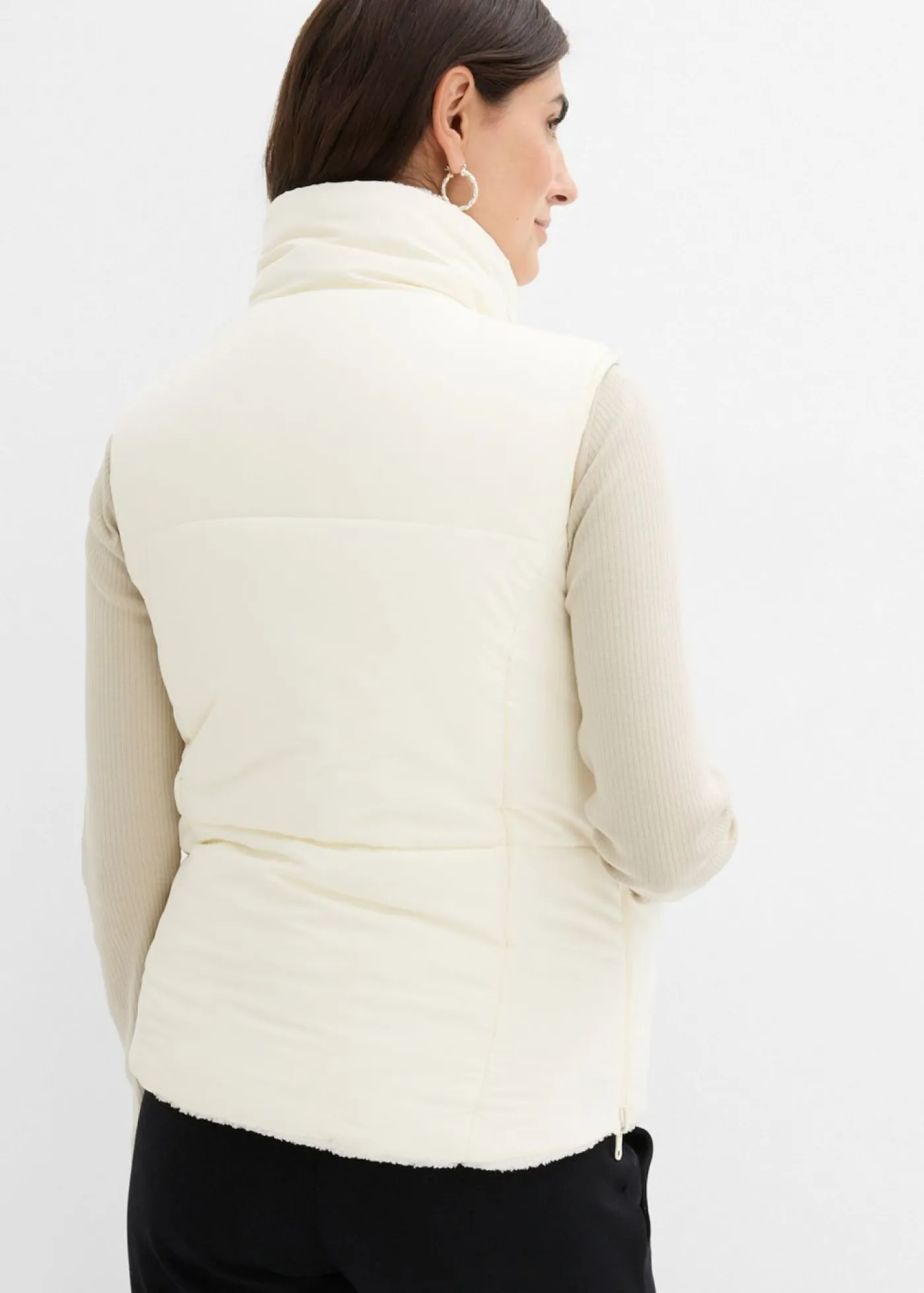Chaqueta guateada polar 4 en 1 para durante y después del embarazo. Chaleco reversible con dos lados prácticos: un lado polar y otro exterior repelente al agua. El práctico inserto de porteo también se puede utilizar por ambos lados: un lado de tejido polar y otro repelente al agua. Las cremalleras laterales se pueden abrir para ofrecer más espacio para el vientre en crecimiento.