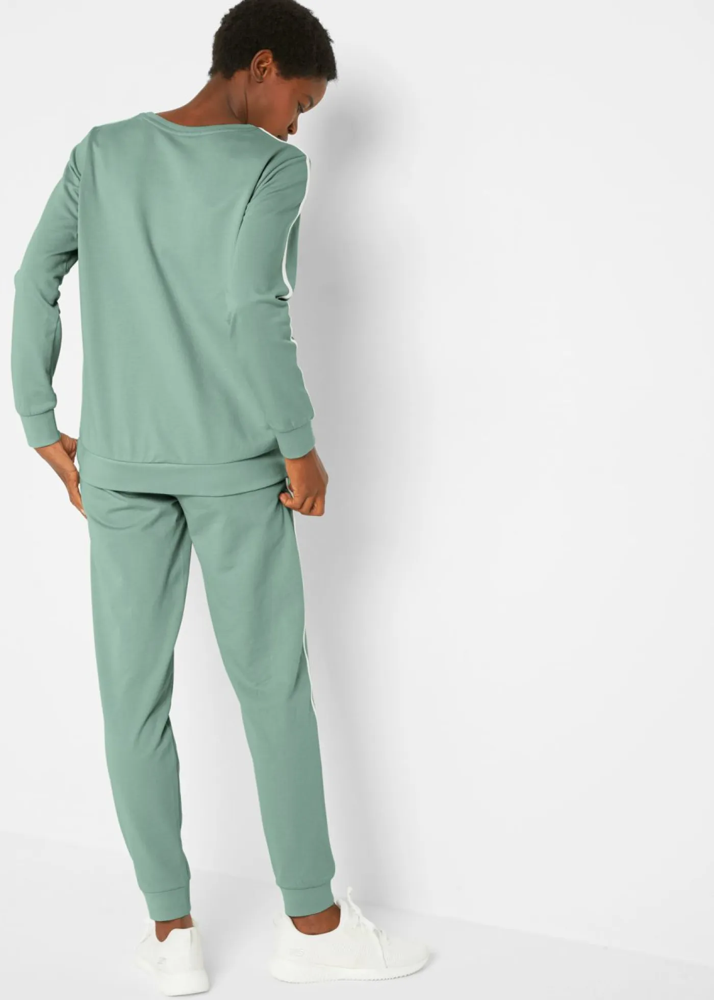 Cómodo conjunto de sudadera y pantalón de chándal. Chándal (2 piezas) con rayas, cintura elástica con cordón. Largo del pantalón de aprox. 74 cm en talla 40/42. Se puede lavar a máquina.