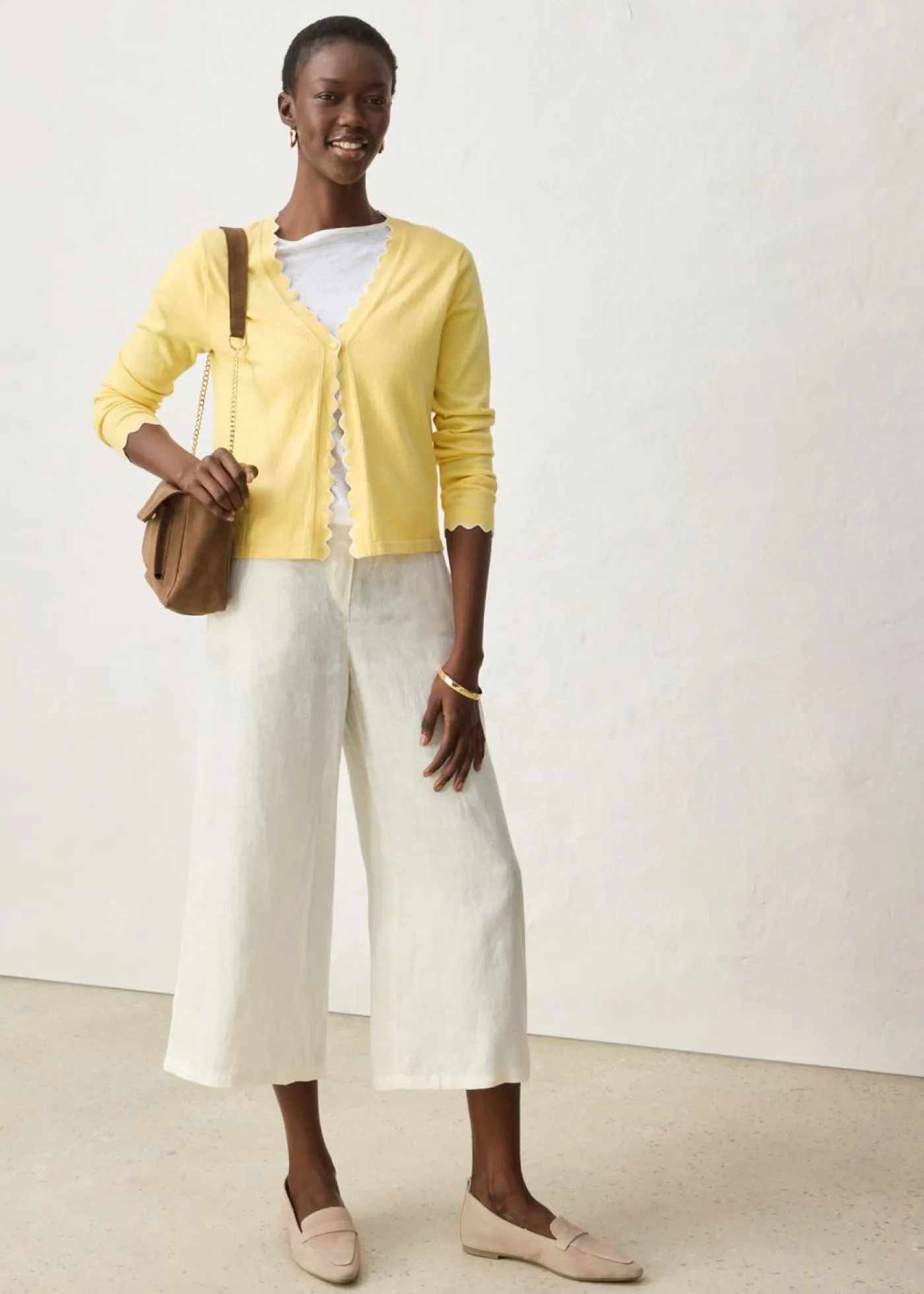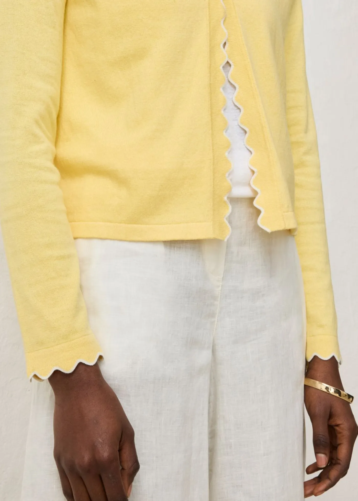 Bonito cárdigan de punto fino con contenido en seda y borde ondulado decorativo.