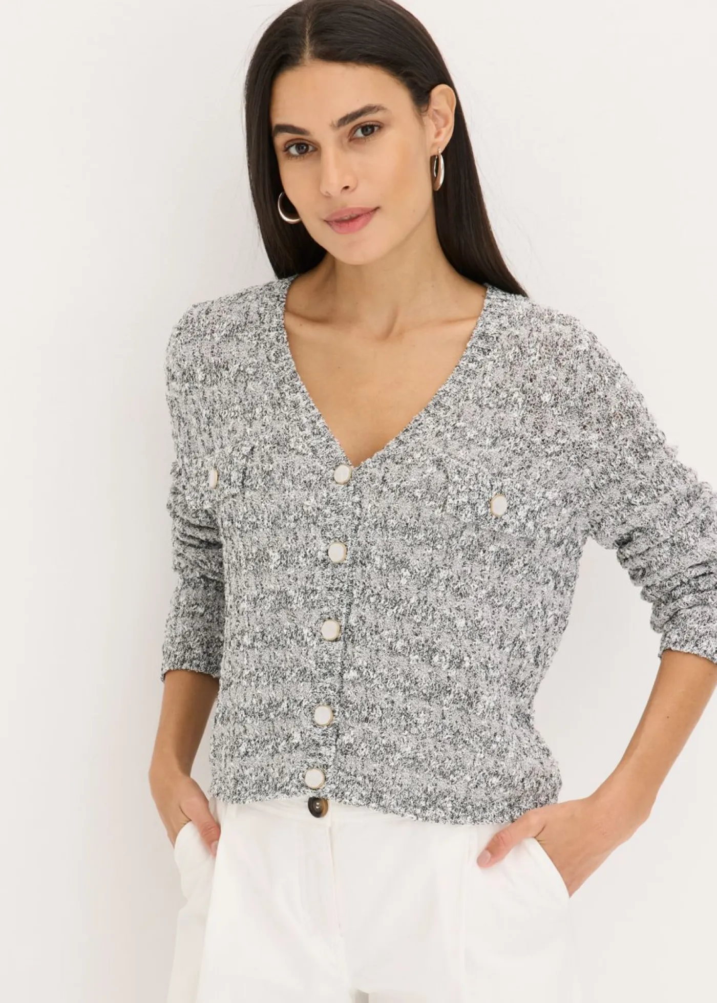 Elegante chaqueta de punto de bouclé.
