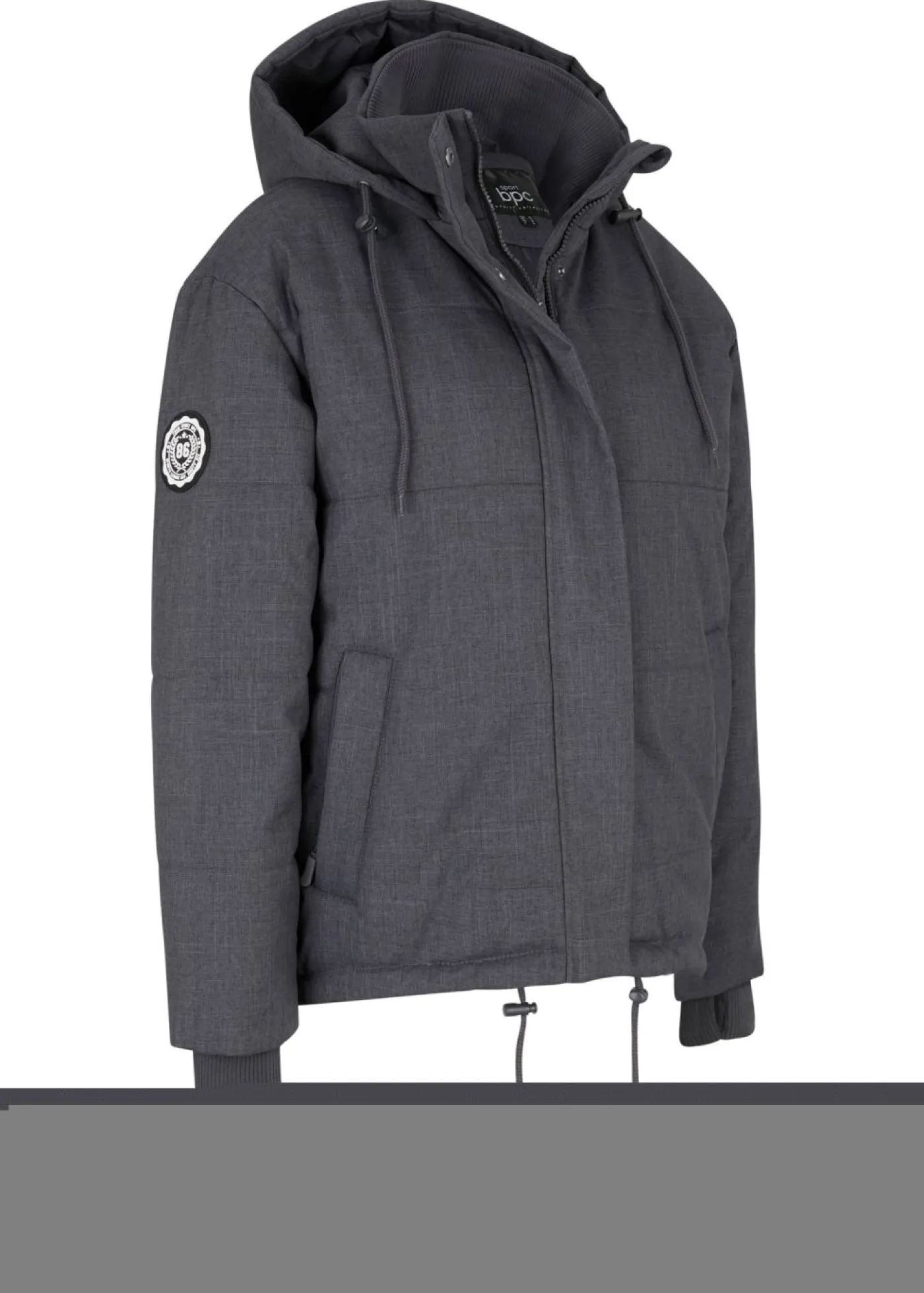 Moderna chaqueta guateada para exteriores con capucha. Cremallera bidireccional con protección para la barbilla y cierre de presión adicional, parte posterior más larga que la parte delantera, orificios para los pulgares, bolsillo interior con guía para cables. Largo de aprox. 74 cm en talla 42.