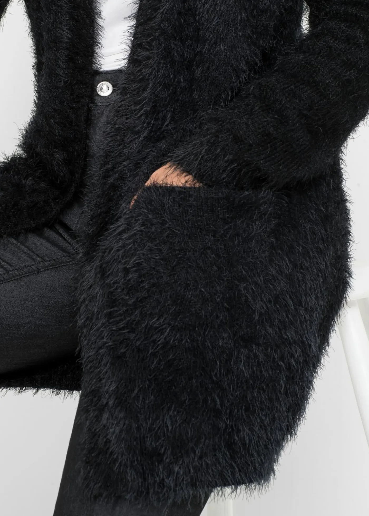 Chaqueta mullida de punto con bolsillos. Déjate arropar por este suave cárdigan cuando hace frío. Se lleva abierto y tiene bolsillos laterales. Lavable a máquina. Largo aproximado 86 cm.