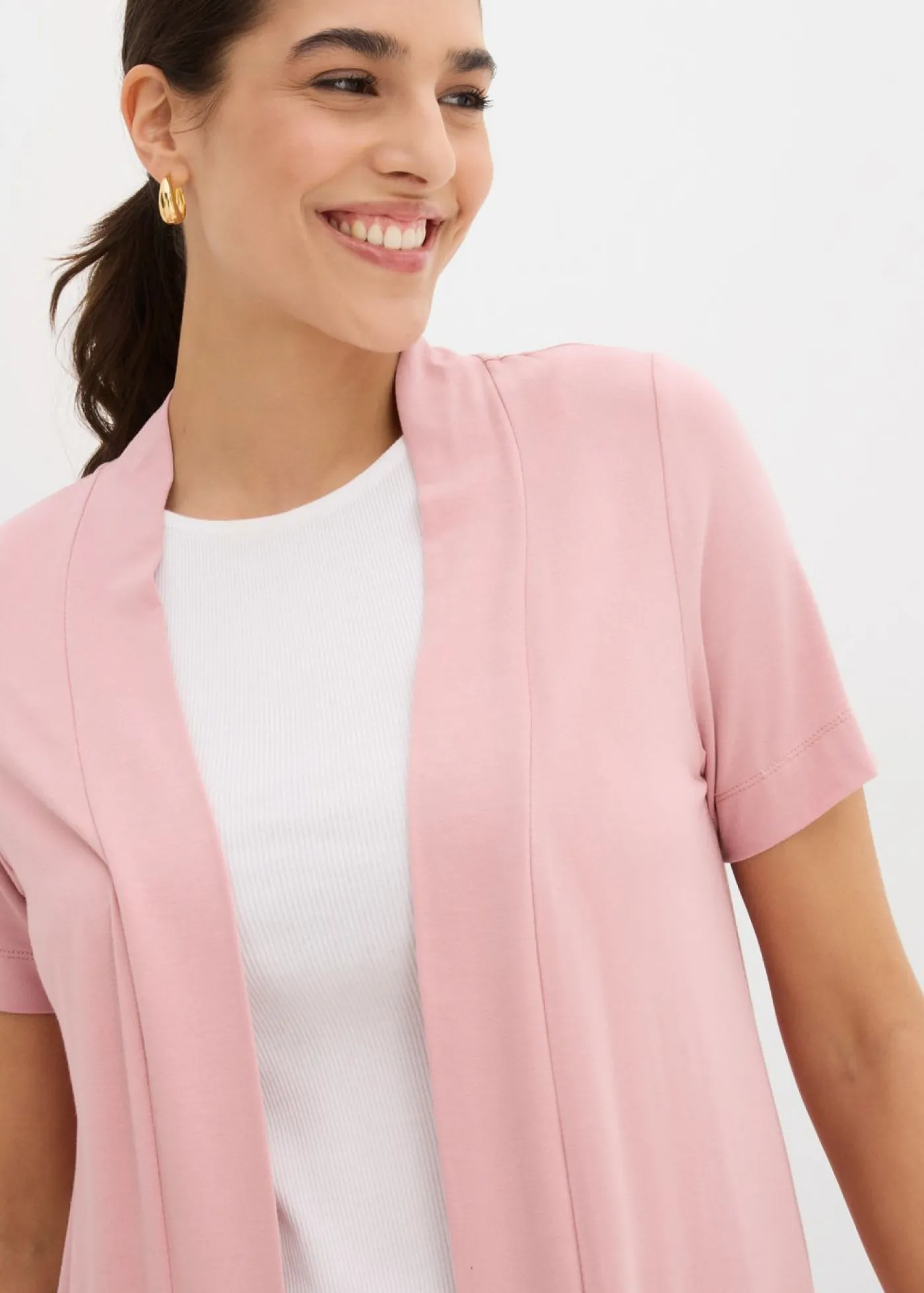 Chaqueta ligera larga de combinación de viscosa con mangas 1/2. Largo de aprox. 90 cm (talla 36/38) a aprox. 100 cm (talla 56/58). Se puede lavar a máquina.