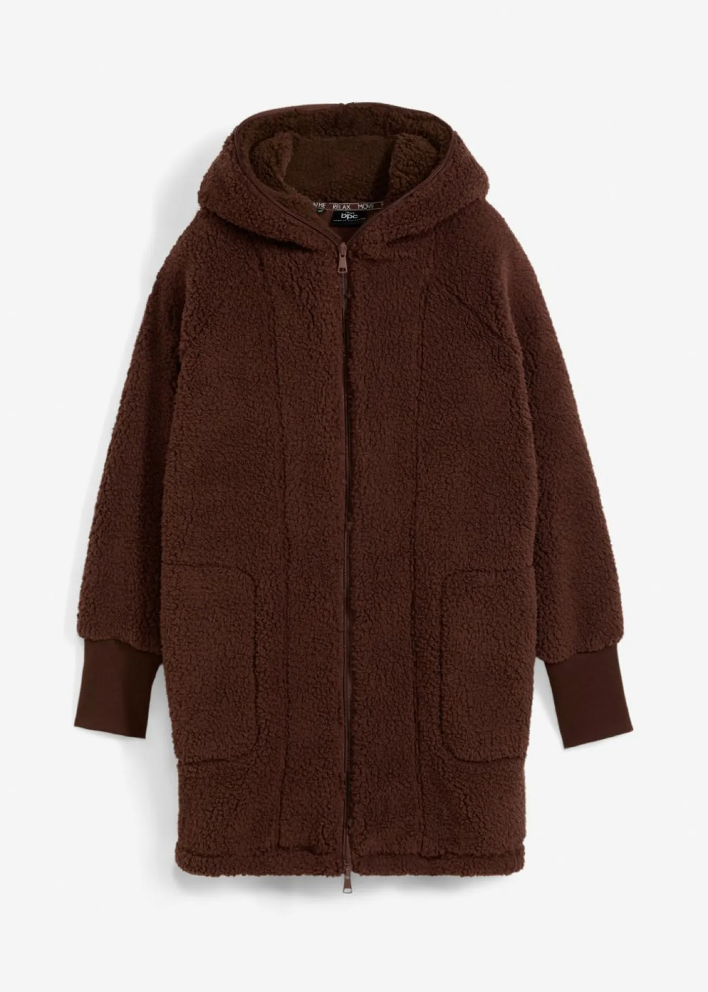 Abrigo polar oversize con bolsillos y cremalleras de doble sentido, que también cierra la capucha. Largo de aprox. 82 cm en talla 40/42. Se puede lavar a máquina.