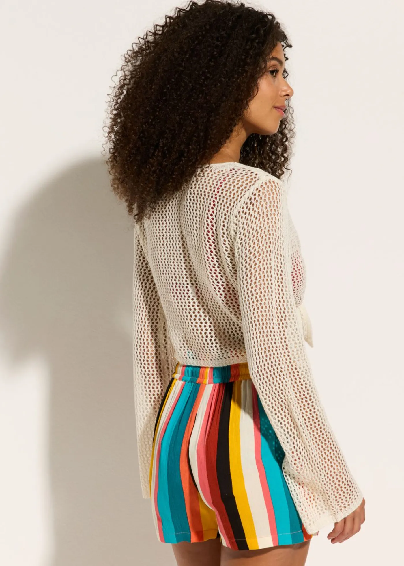 Chaquetilla transparente de punto ajour para anudar.