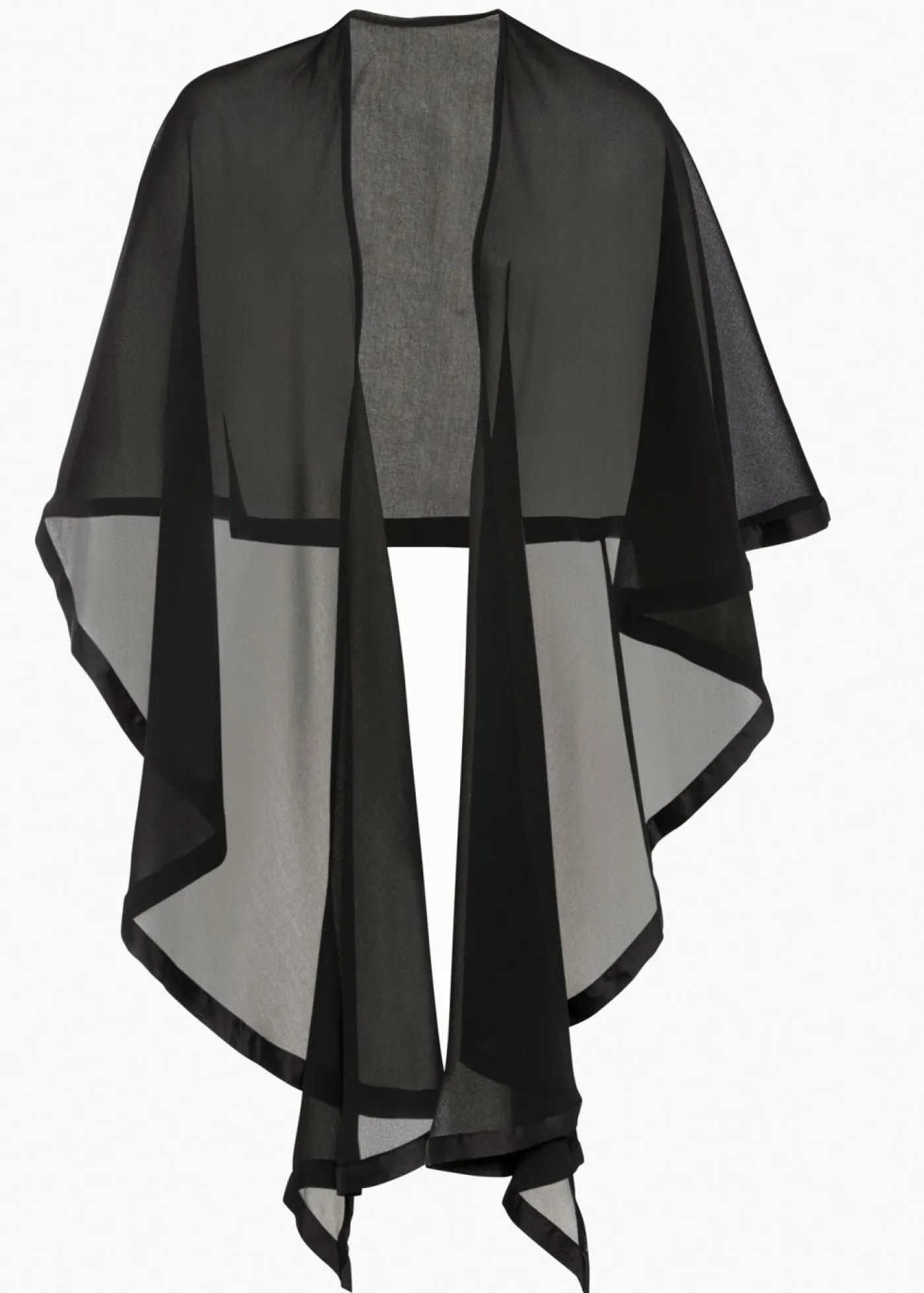 Bonito pañuelo tipo poncho con look glamour. Este chal estilo poncho ligero se puede combinar de muchas formas y realza cualquier atuendo.