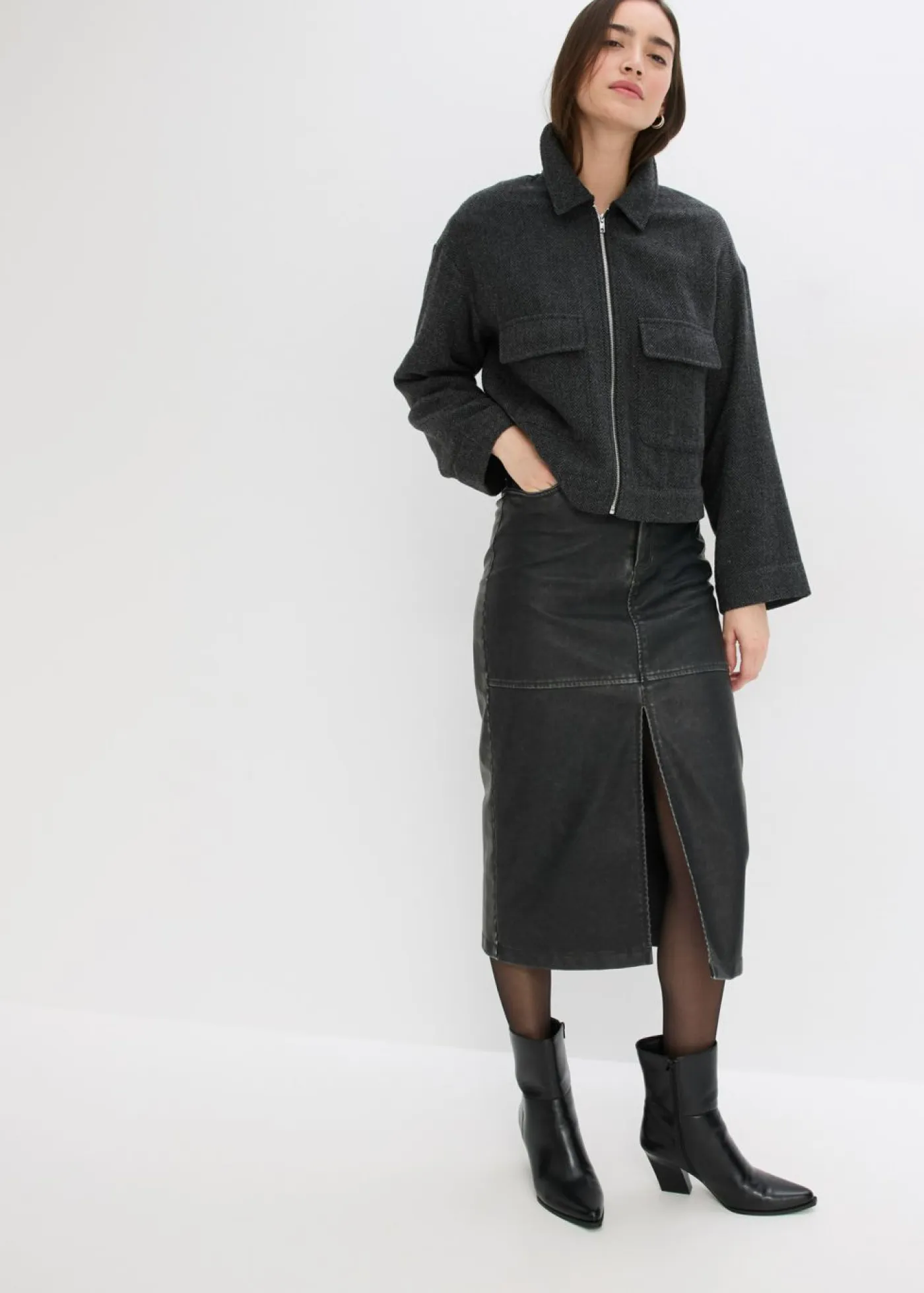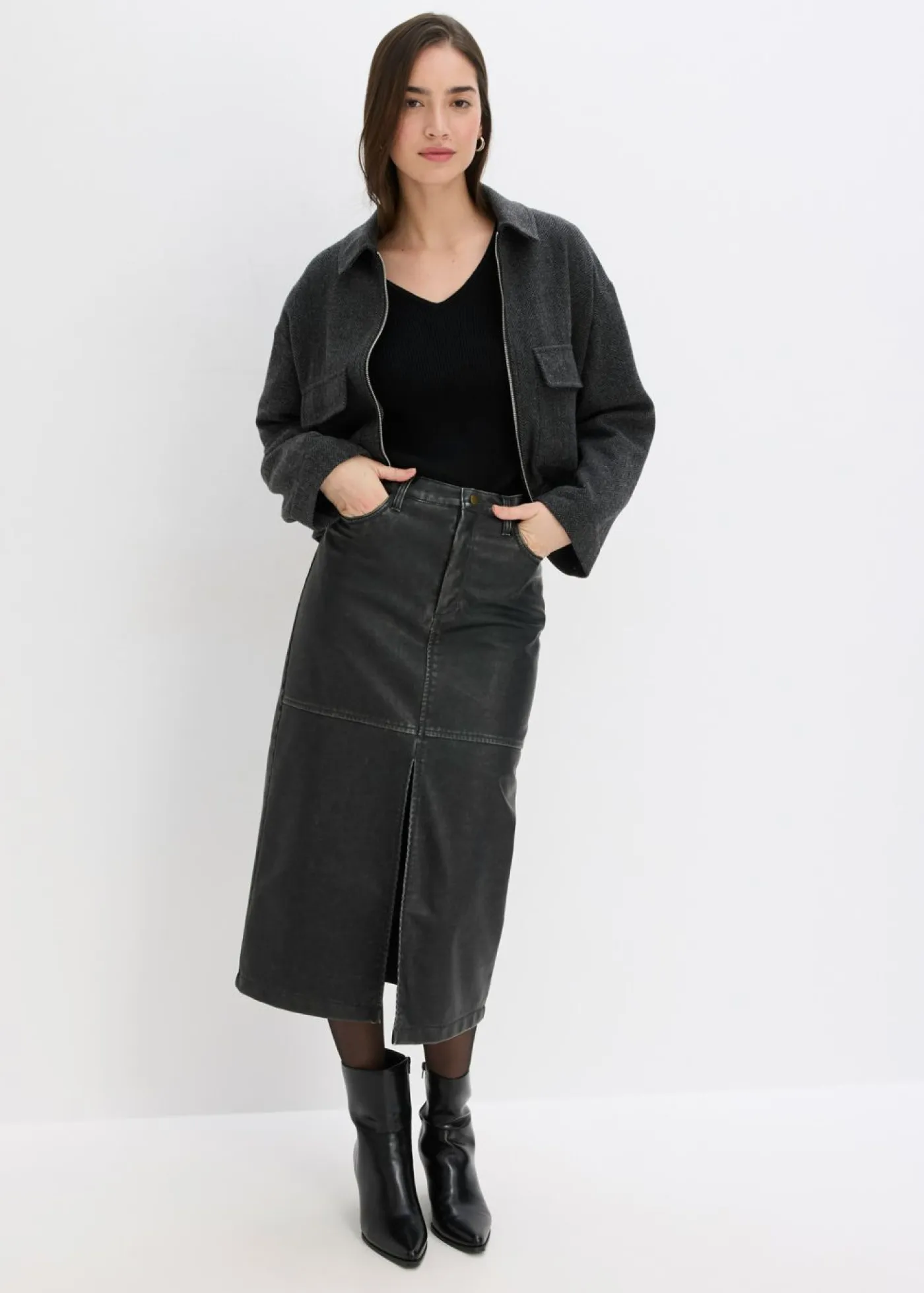 Preciosa falda con bonitas costuras y abertura en la parte delantera.