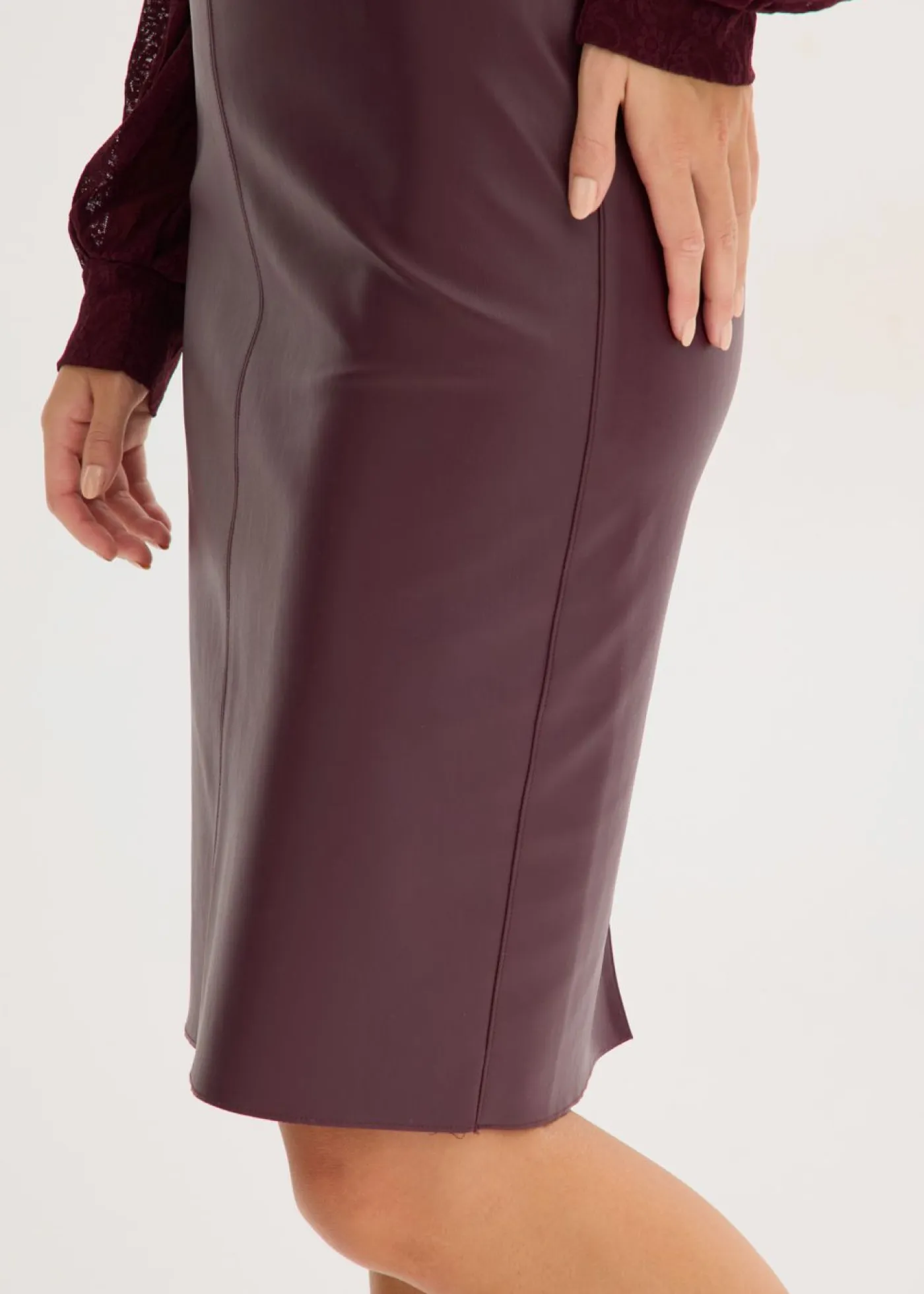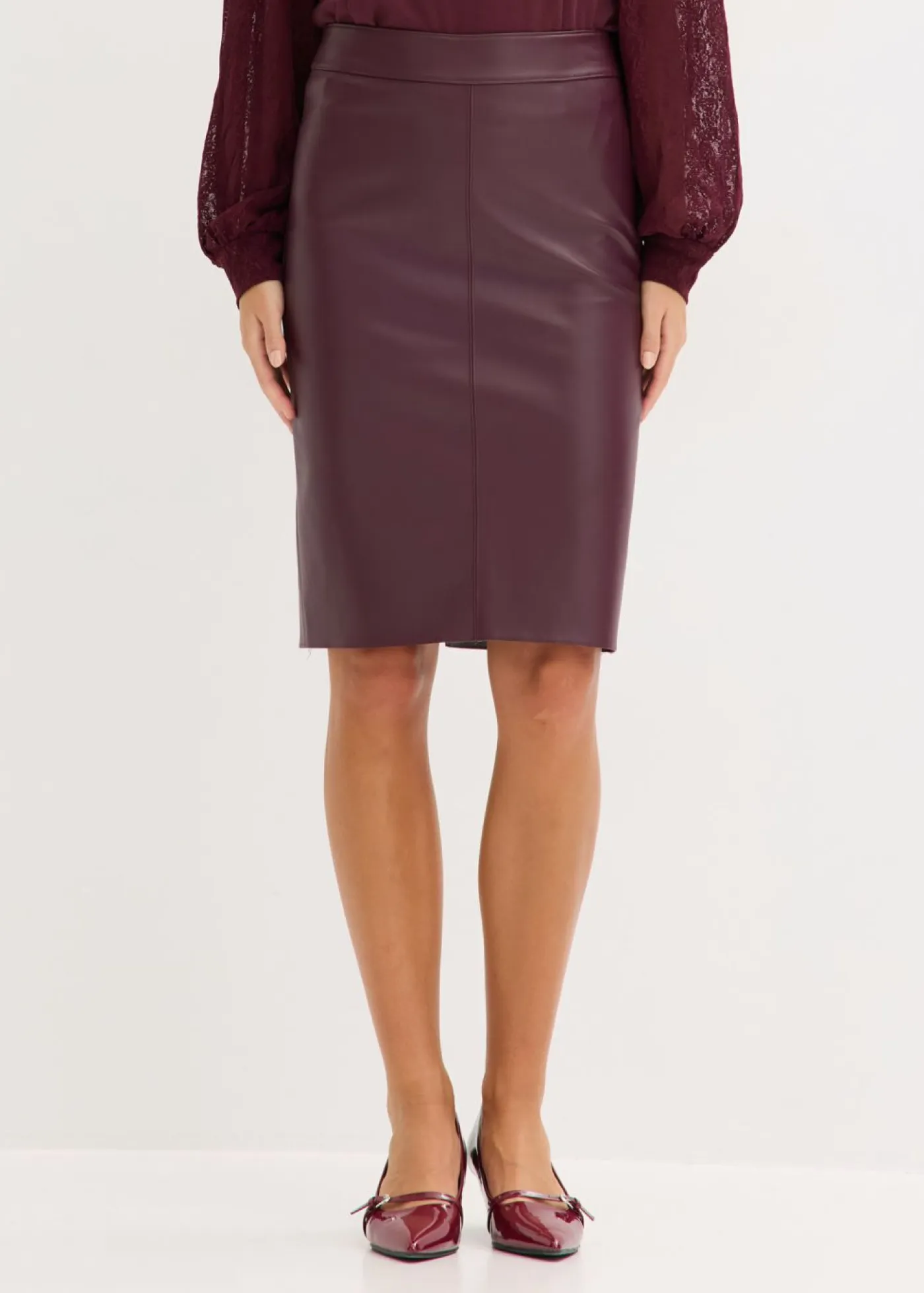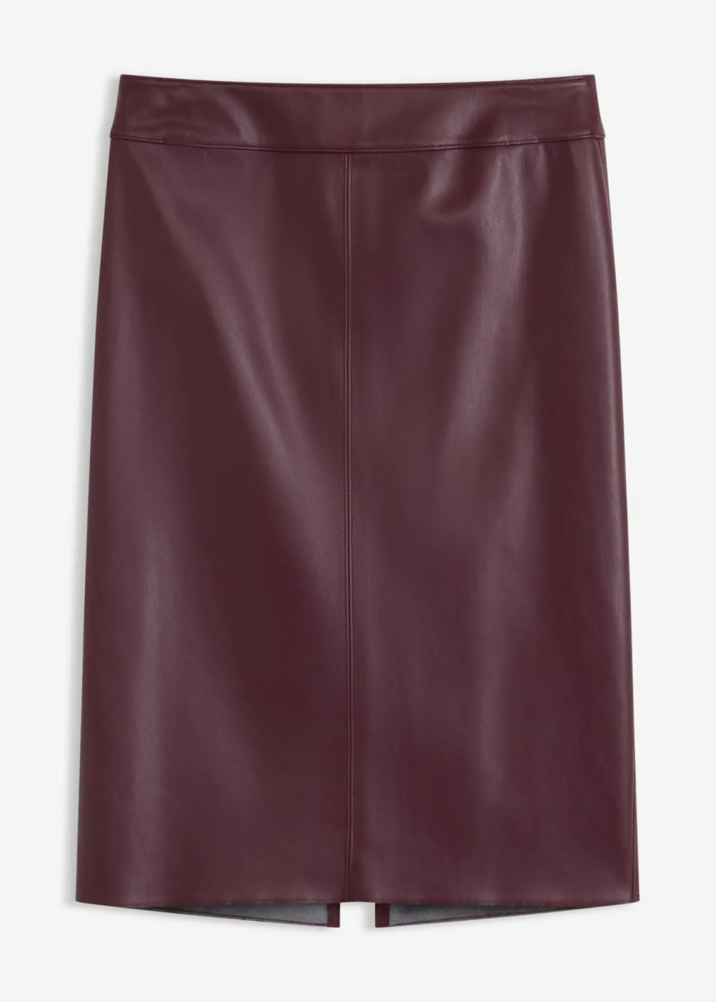 Moderna falda lápiz de piel sintética con un ajuste favorecedor.