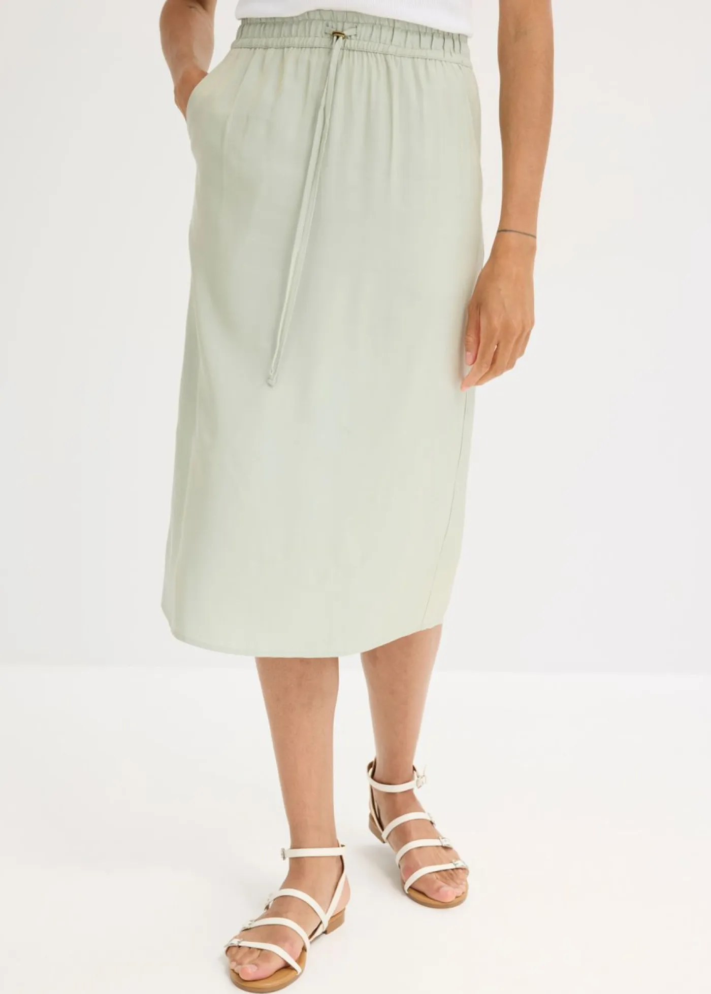 Falda midi de satén brillante