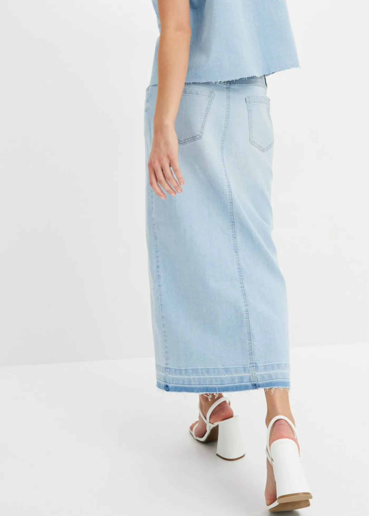Falda vaquera con abertura y dobladillo abierto para verano.