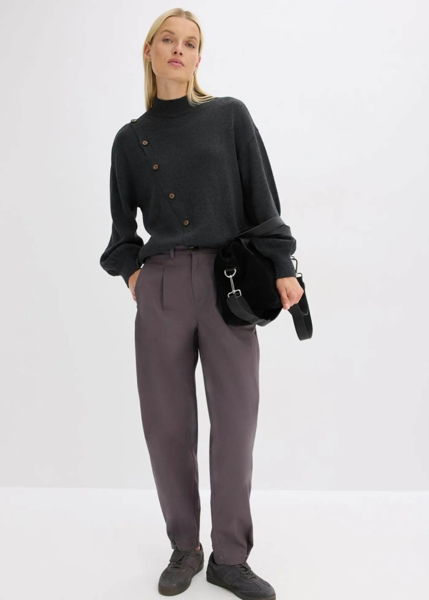 Jersey con corte ligeramente oversize y botones en diagonal, que permiten abrir el hombro.