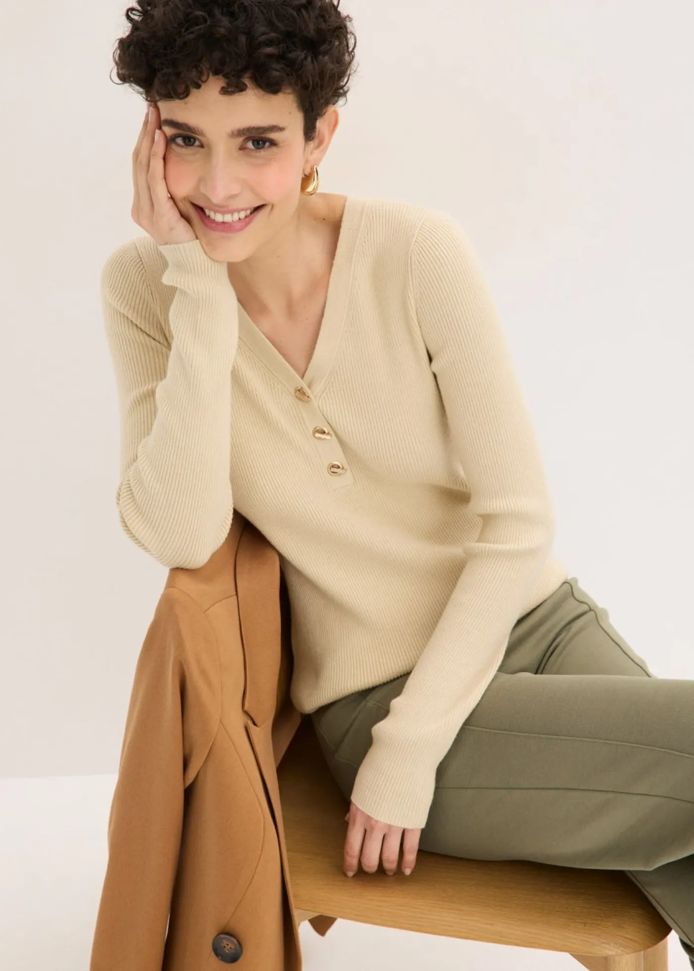 Elegante jersey de canalé con botones divertidos.