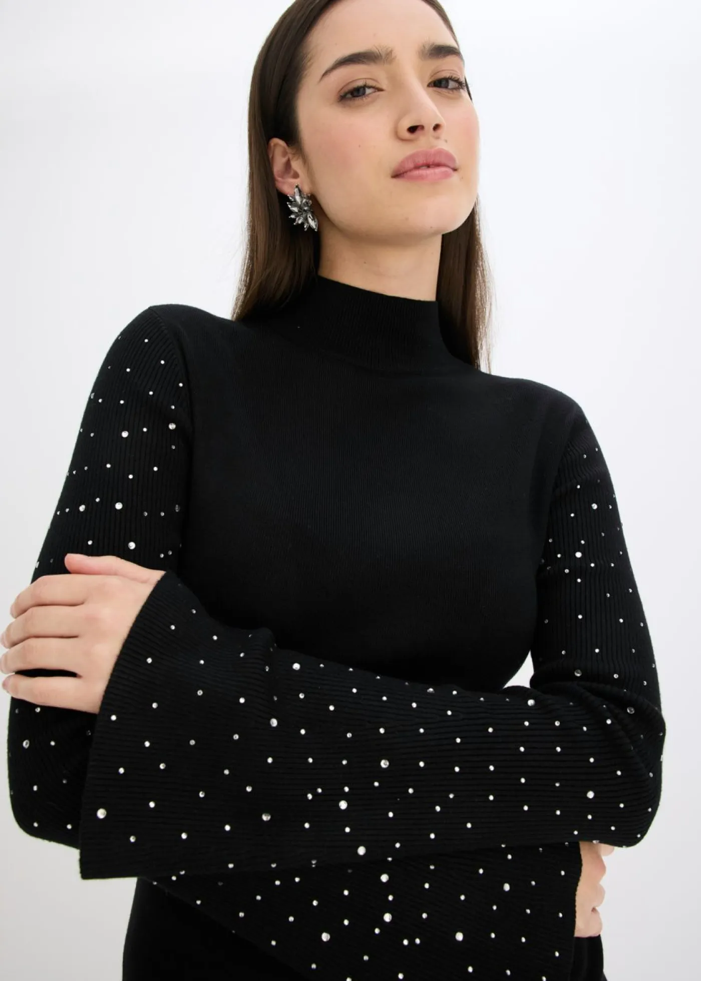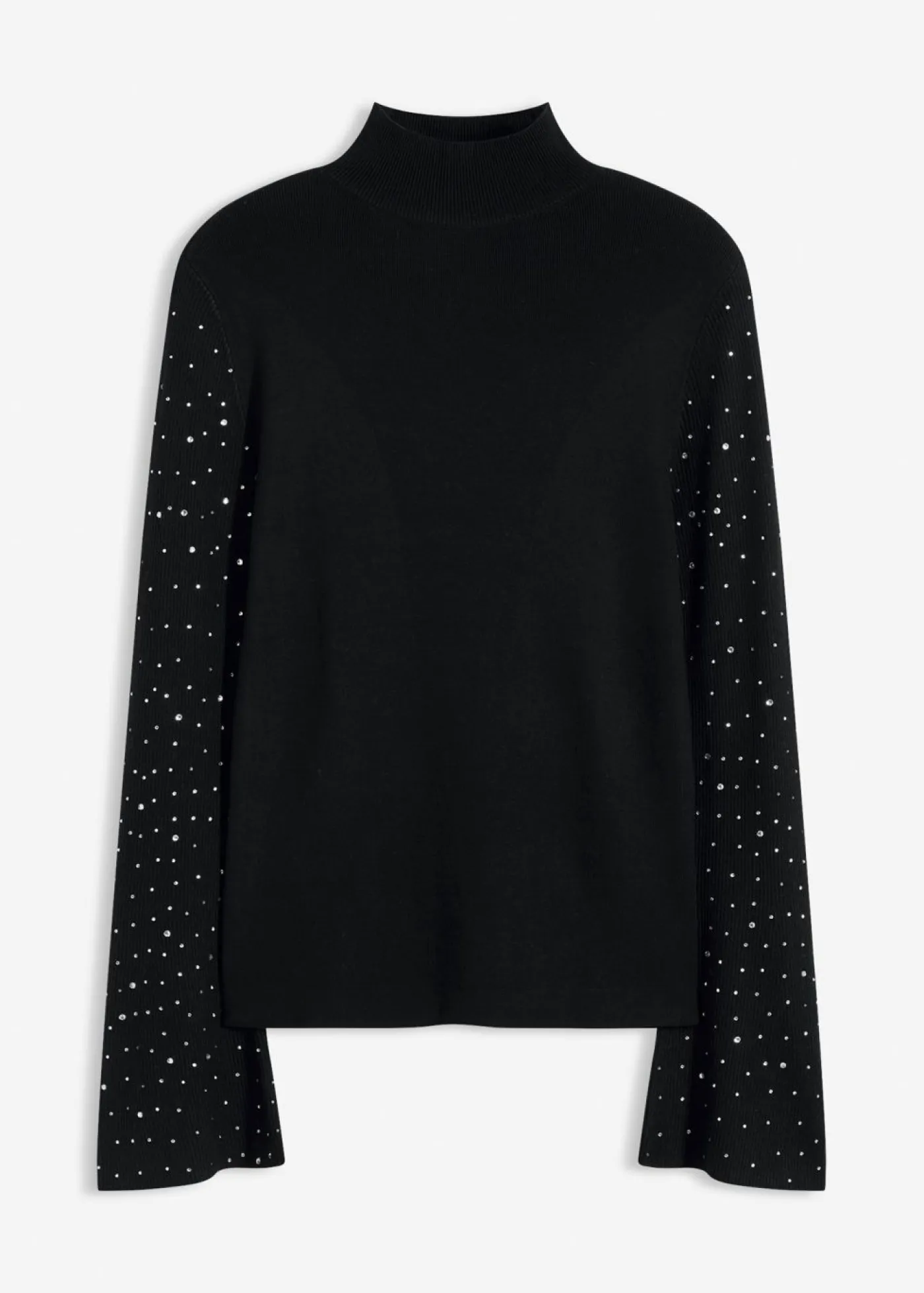 Jersey femenino con mangas acampanadas adornadas con pedrería.